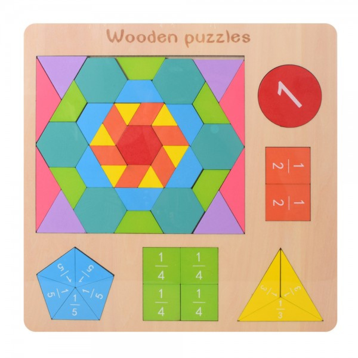 Дерев“яна рамка-вкладиш Геометрика головоломка — чудовий спосіб познайомити дитину з такими поняттями, як колір, форма, геометричні фігури, ціле та частини.