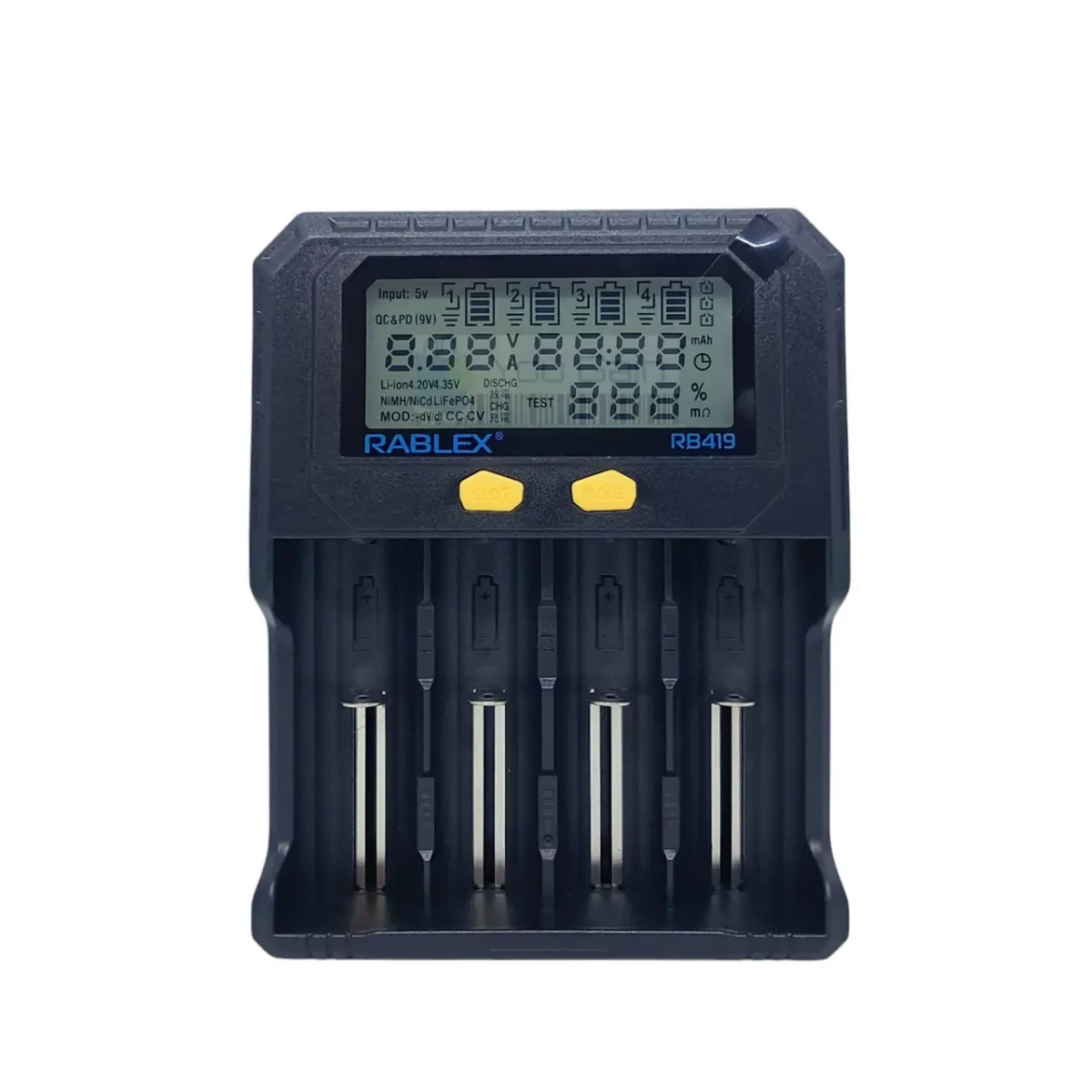 Автоматичний зарядний пристрій RABLEX 401 дає змогу заряджати різні формати акумуляторів — від простих і популярних типорозмірів АА, ААА до Li-ion починаючи від 14500 до 26700, включно з найпопулярнішим форматом — 18650. Пристрій просто в керуванні — Вам досить вставити акумулятори в гнізда — інше Rablex зробить сам.