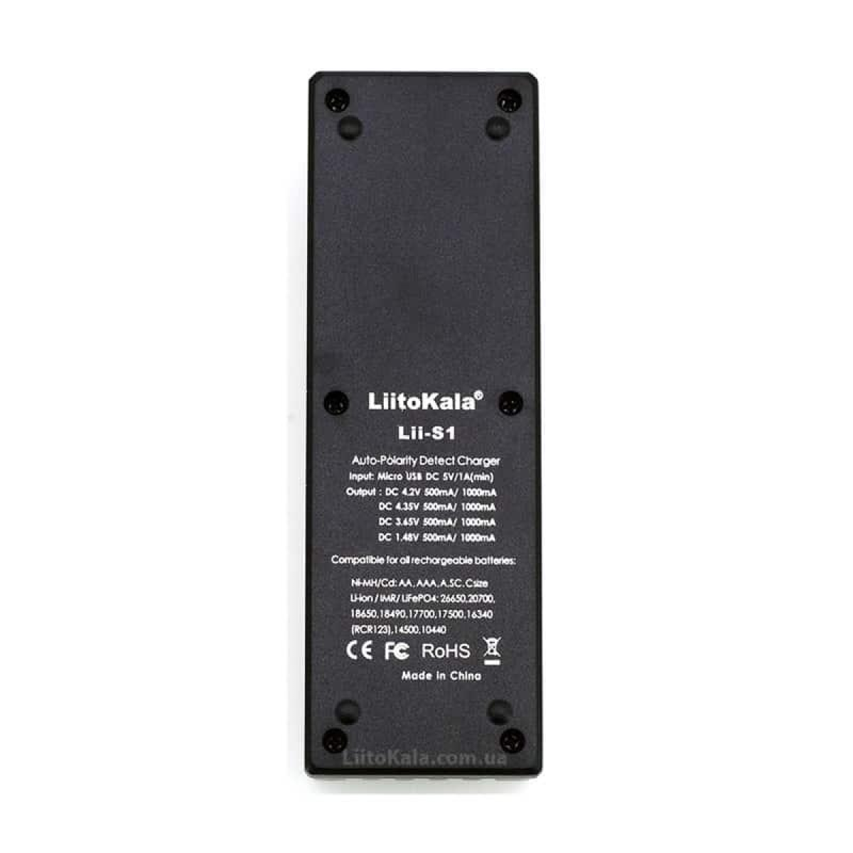 Автоматичне універсальне зарядний пристрій LiitoKala Lii-100 дає змогу заряджати різні формати акумуляторів — від простих і популярних типорозмірів АА, ААА до Li-ion починаючи від 10440 до 26650, включно з найпопулярнішим форматом — 18650. Пристрій просто в керуванні — Вам досить вставити акумулятори в гнізда — решта S1 зробить сам.