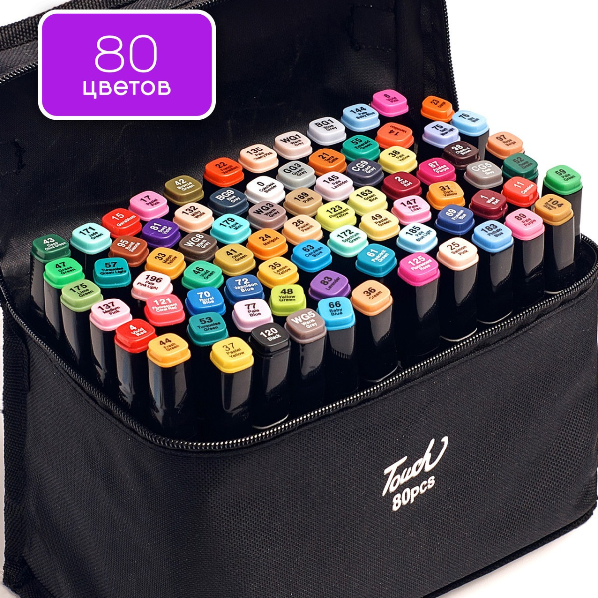 Великий набір скетч маркерів 80 кольорів Touch Raven у чорному чохлі та Блокнот А4 для малювання у подарунок!