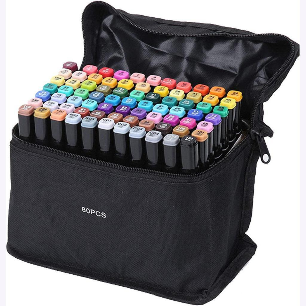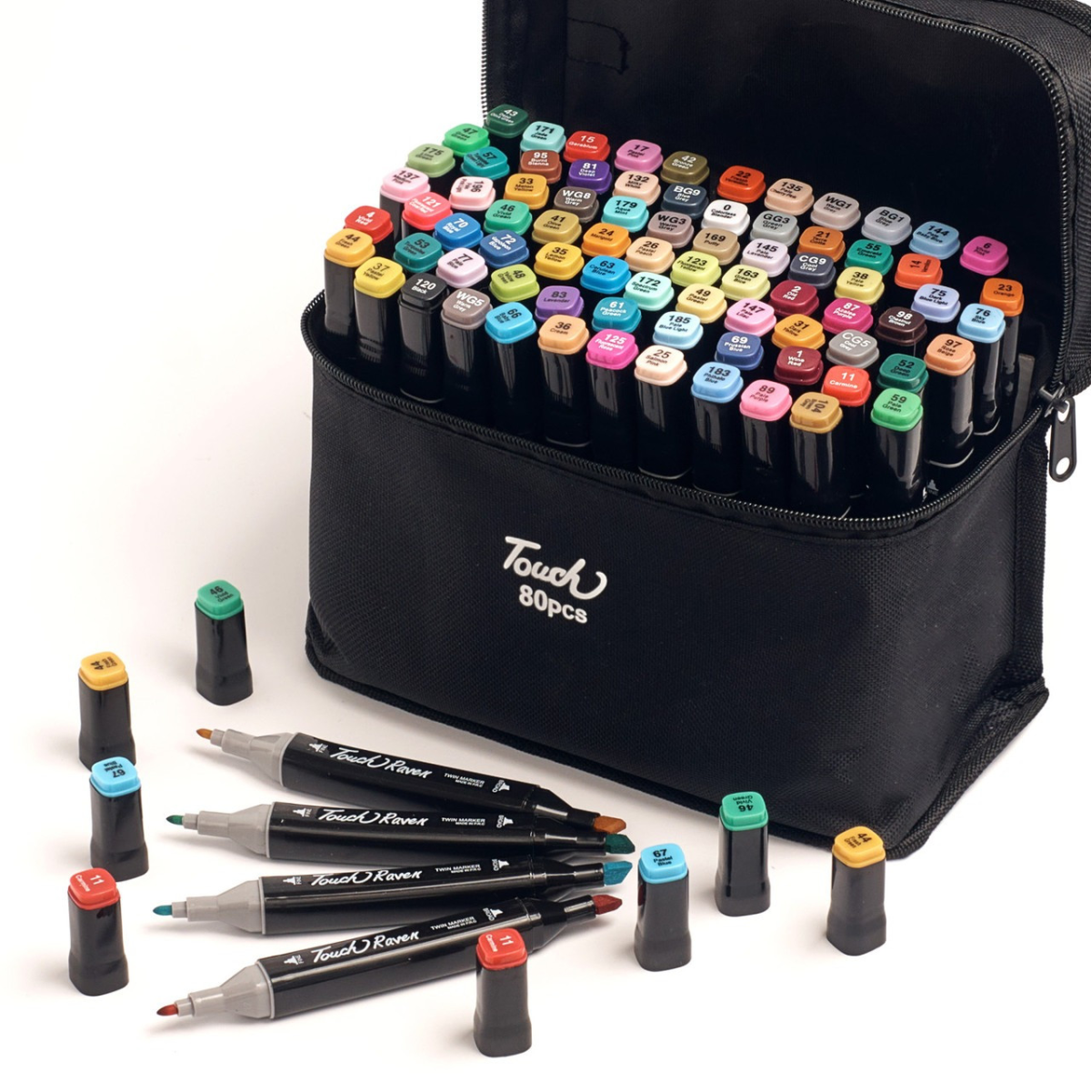 Великий набір скетч маркерів 80 кольорів Touch Raven у чорному чохлі та Блокнот А5 для малювання у подарунок!