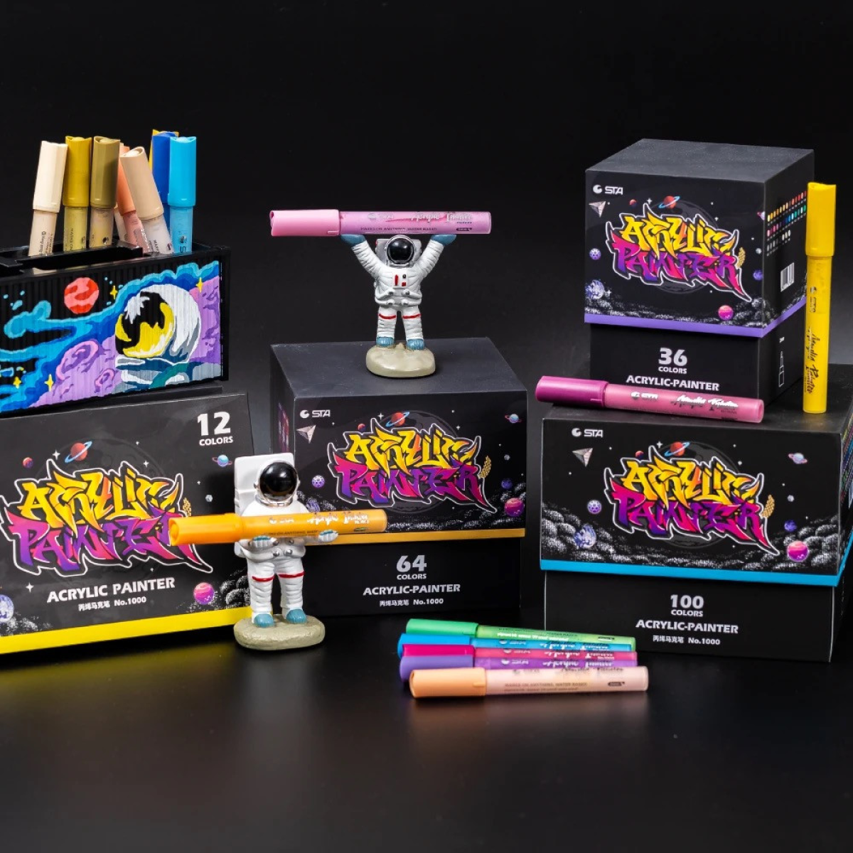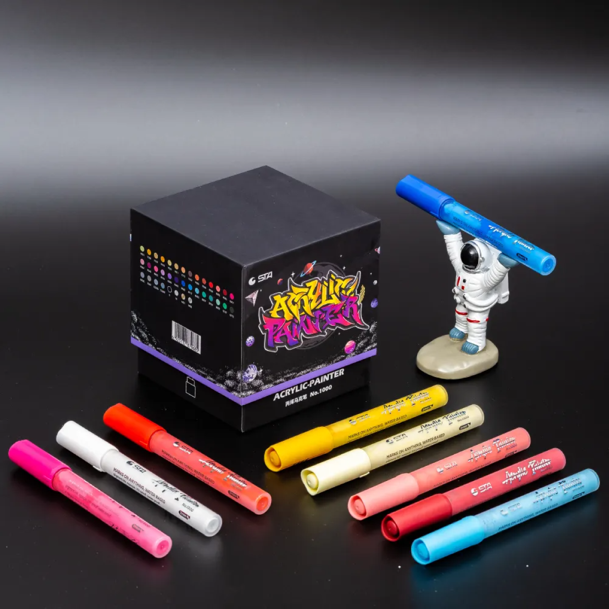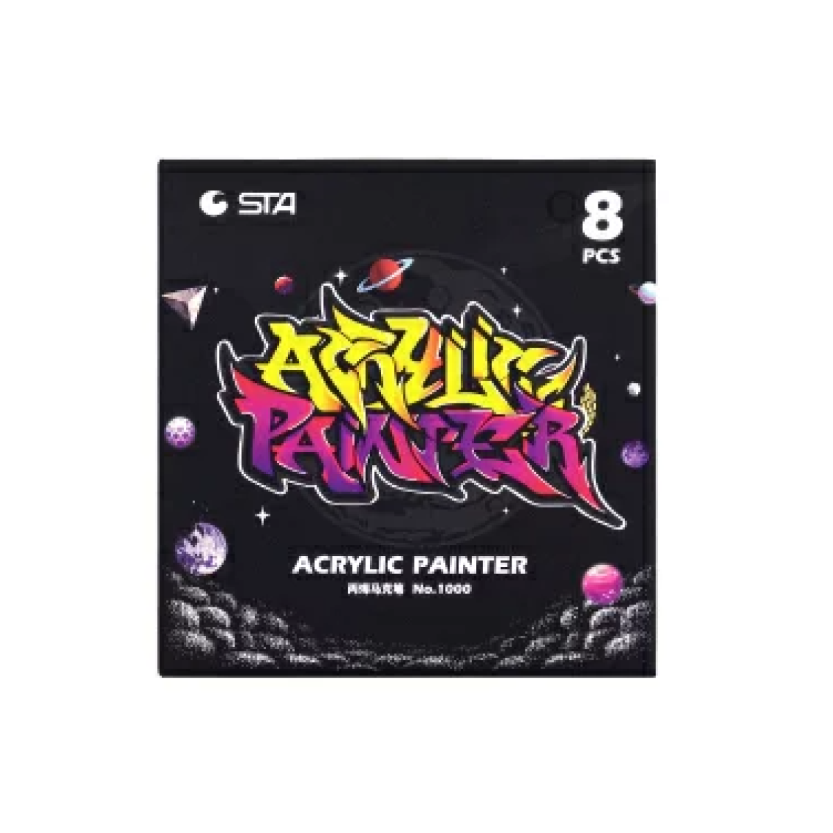 Маркери акрилові STA для малювання, преміум якість, набір 8 кольорів, універсальні для скла, дерева, ткани та кераміки