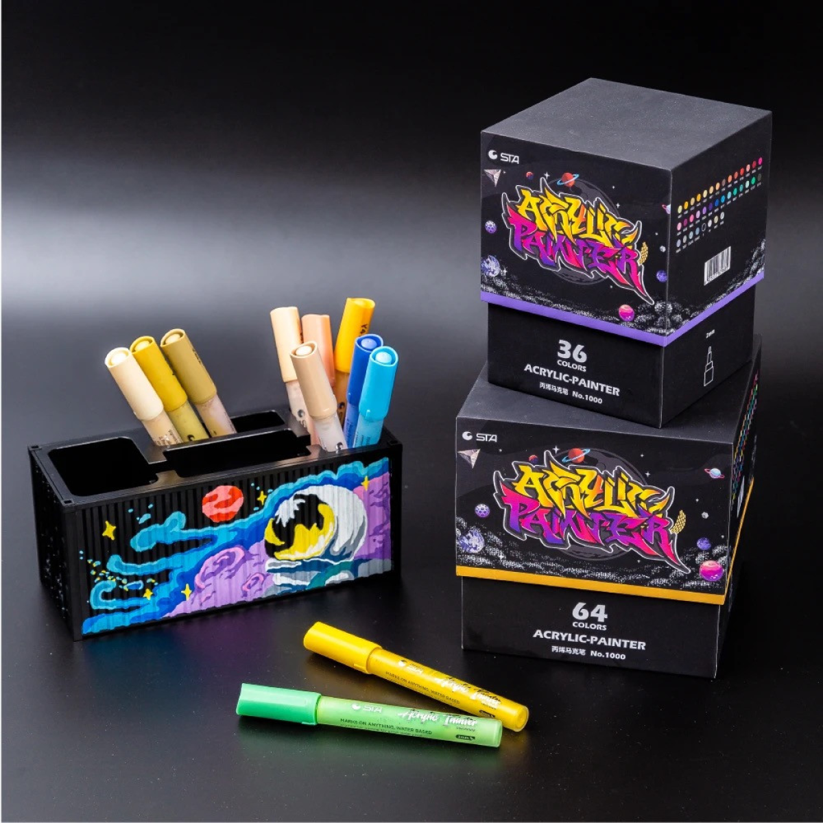 Акрилові художні маркери STA з пігментним чорнилом на водній основі - це універсальні та високоякісні інструменти для створення яскравих, довговічних малюнків на різних поверхнях. Кожен маркер наповнений насиченими, непрозорими кольорами з акрилової фарби професійного рівня, що робить їх ідеальними для малювання на папері, полотні, склі, кераміці, пластику та дереві. Цей набір дає змогу малювати чіткі та барвисті зображення, ніби «наповнені» кольором зсередини, а також наносити написи та зображення на будь-які поверхні. Товщина лінії 2 мм чудово підходить для створення скетчів, ілюстрацій і чітких контурів. Завдяки тому, що фарби можна змішувати між собою, досягається ефект плавних переходів і нових відтінків. Кольорові акрилові маркери з легкістю можуть використовувати як діти, так і дорослі, що робить їх чудовим вибором для різноманітних DIY-проектів і творчих експериментів. Характеристики: Палітра: 8 кольорів Розмір маркера: 146,2*18 мм Товщина лінії: 2 мм Чорнило: 6 г Ресурс: 100 м
