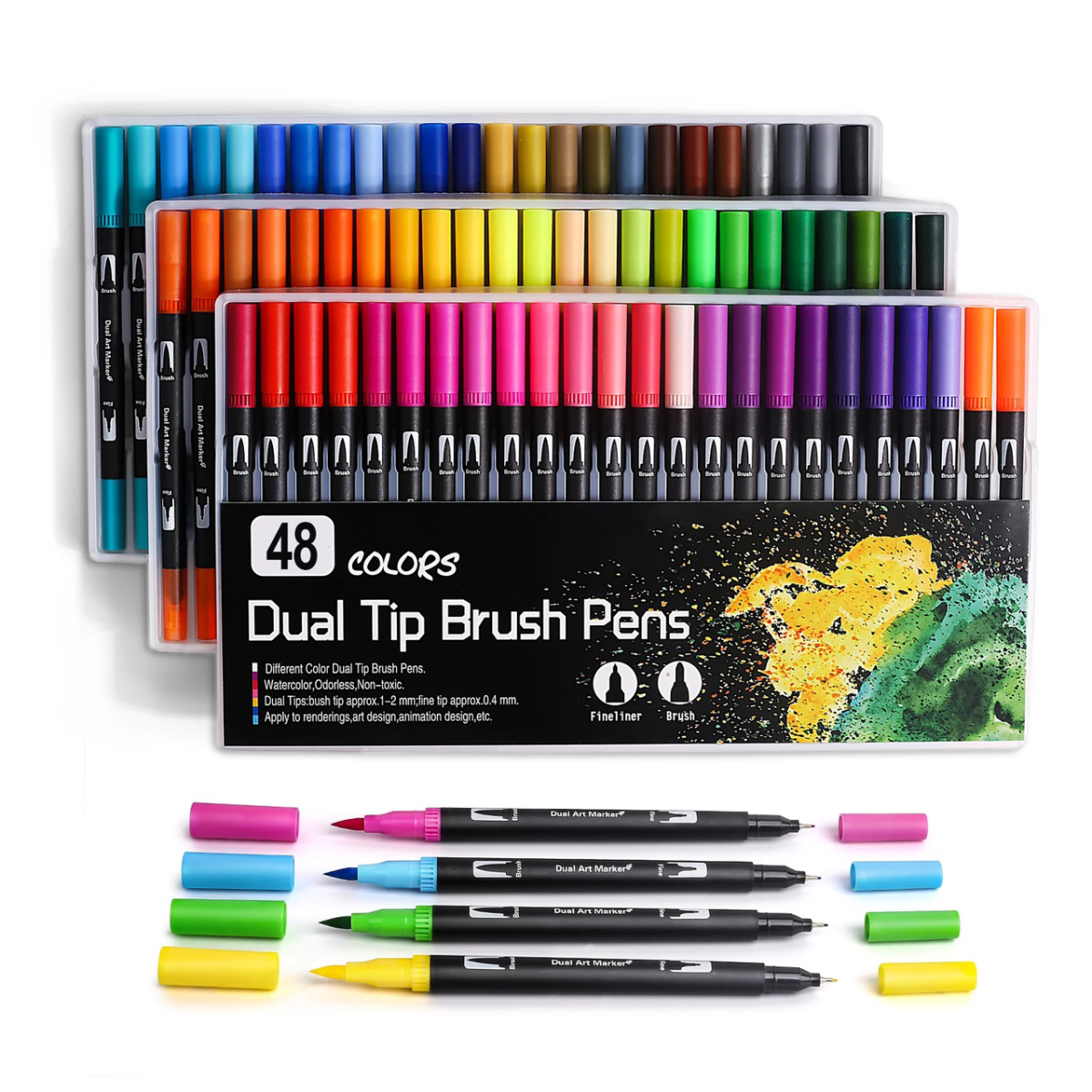 Набір акварельних маркерів для скетчингу та малювання 48 кольорів, акварельні двосторонні маркери Brush