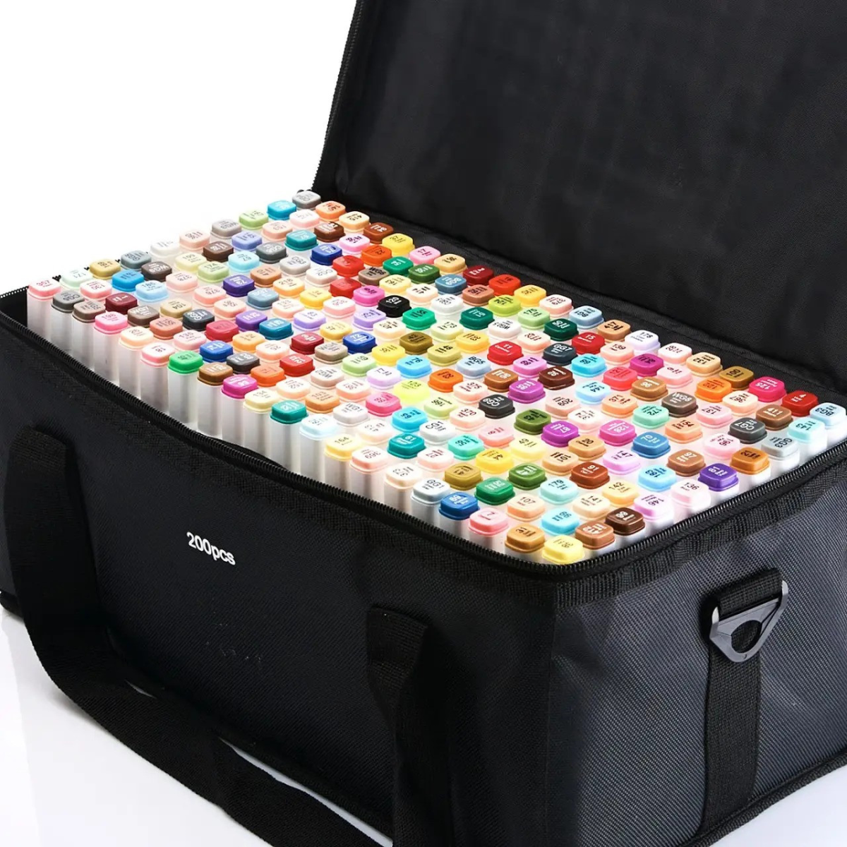 Маркери набір Touch Smooth 200 шт двосторонні спиртові для малювання, скетчів+Підставка зелена під маркери