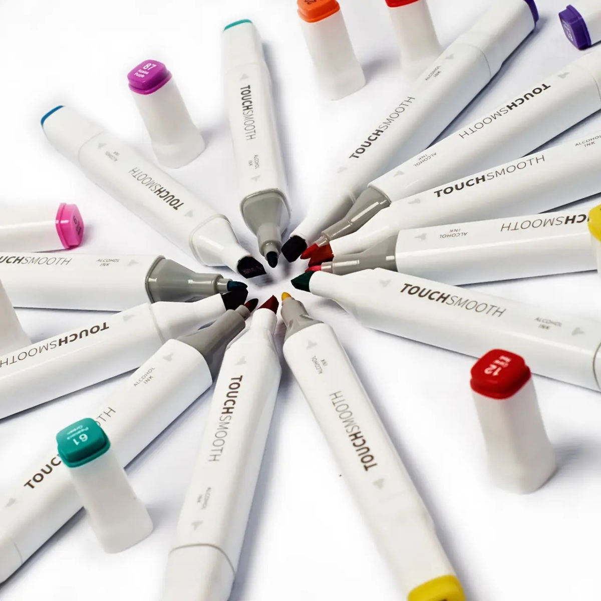 Маркери набір Touch Smooth 200 шт двосторонні спиртові для малювання, скетчів+Підставка блакитна під маркери