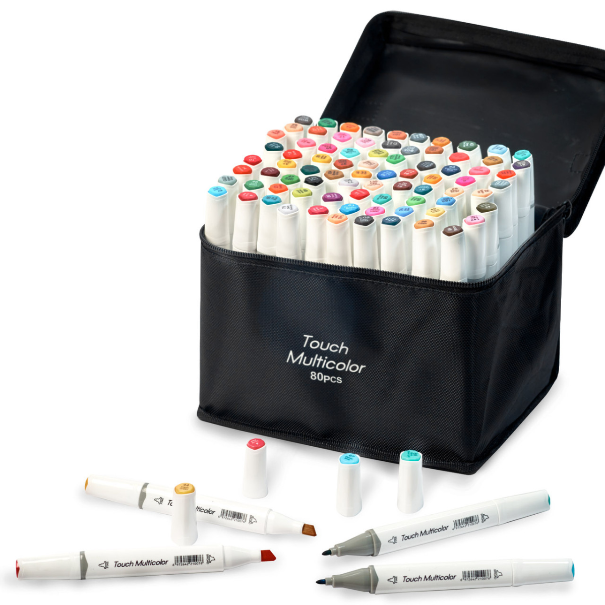 Набір двосторонніх маркерів Touch Multicolor: 80 відтінків для творчості Маркери Touch Multicolor на 80 кольорів створені для тих, хто шукає поєднання яскравості, якості та зручності. Багата палітра відтінків ідеально підходить для малювання, скетчингу, ілюстрацій та роботи з деталями. Унікальна формула спиртового чорнила забезпечує плавні колірні переходи та рівномірне нанесення, відкриваючи можливості для створення професійних робіт. Кожен маркер оснащений двома наконечниками: загостреним для промальовування контурів, деталей і точної роботи, і скошеним для зафарбовування великих областей або створення широких мазків. Пластиковий корпус ергономічної форми зручно лежить у руці, а ковпачки, що щільно закриваються, запобігають висиханню чорнила. Для зручності використання ковпачки забезпечені цифровими кодами, даючи змогу легко орієнтуватися в багатій палітрі відтінків. Підставка для маркерів додає зручності: міцна пластикова конструкція з чотирма секціями дає змогу організувати зберігання і швидко знаходити потрібний маркер. Компактний розмір підставки робить її практичним рішенням для будь-якого робочого простору, зберігаючи порядок і спрощуючи доступ до інструментів. Особливості маркерів: Два наконечники: загострений для тонких ліній і скошений для широких мазків. Чорнило на спиртовій основі з плавними переходами відтінків. Ергономічний пластиковий корпус, довжина - 16,8 см. Щільні ковпачки з цифровими кодами для зручної ідентифікації кольору. Особливості підставки: Матеріал: міцний пластик. Чотири секції для зручної організації робочого простору Компактні розміри: 8.5 × 9 × 20 см. Яскравий зелений колір