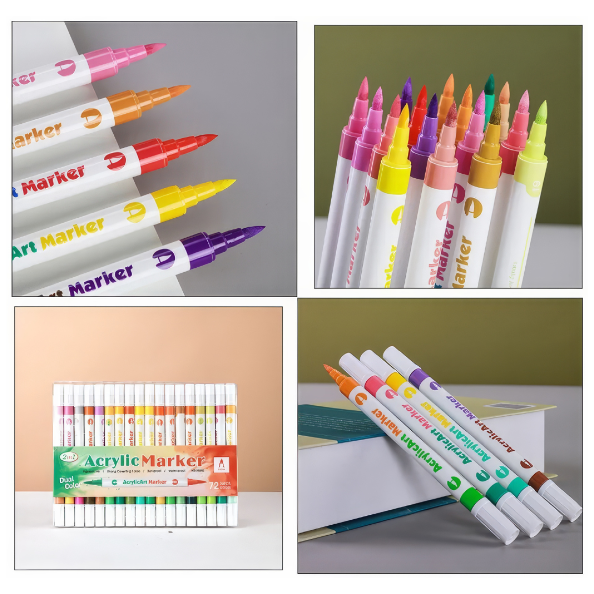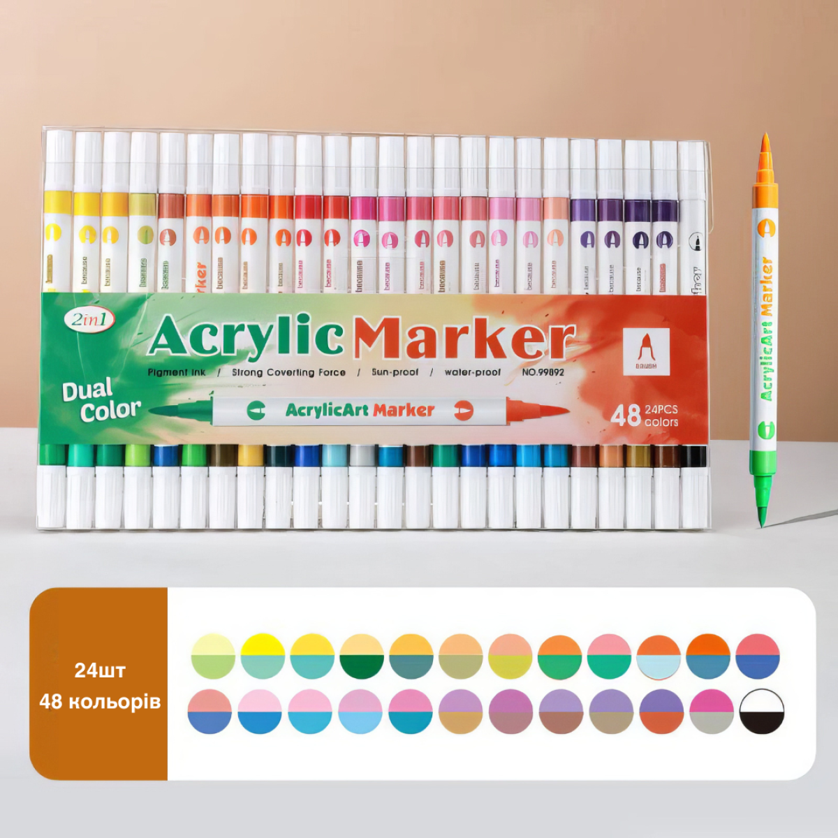 Двосторонні акрилові маркери, 24 шт. (48 кольорів), універсальний набір для паперу, скла, дерева, тканини