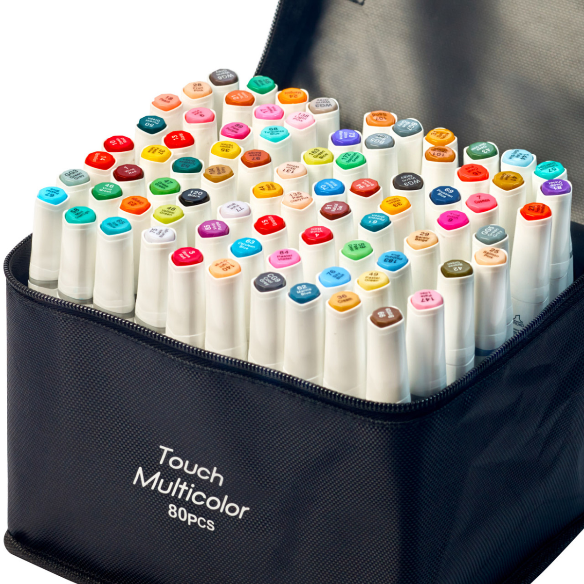 Набір професійних двосторонніх маркерів для скетчинга 80 квітів у чохлі, Фломастери для малювання