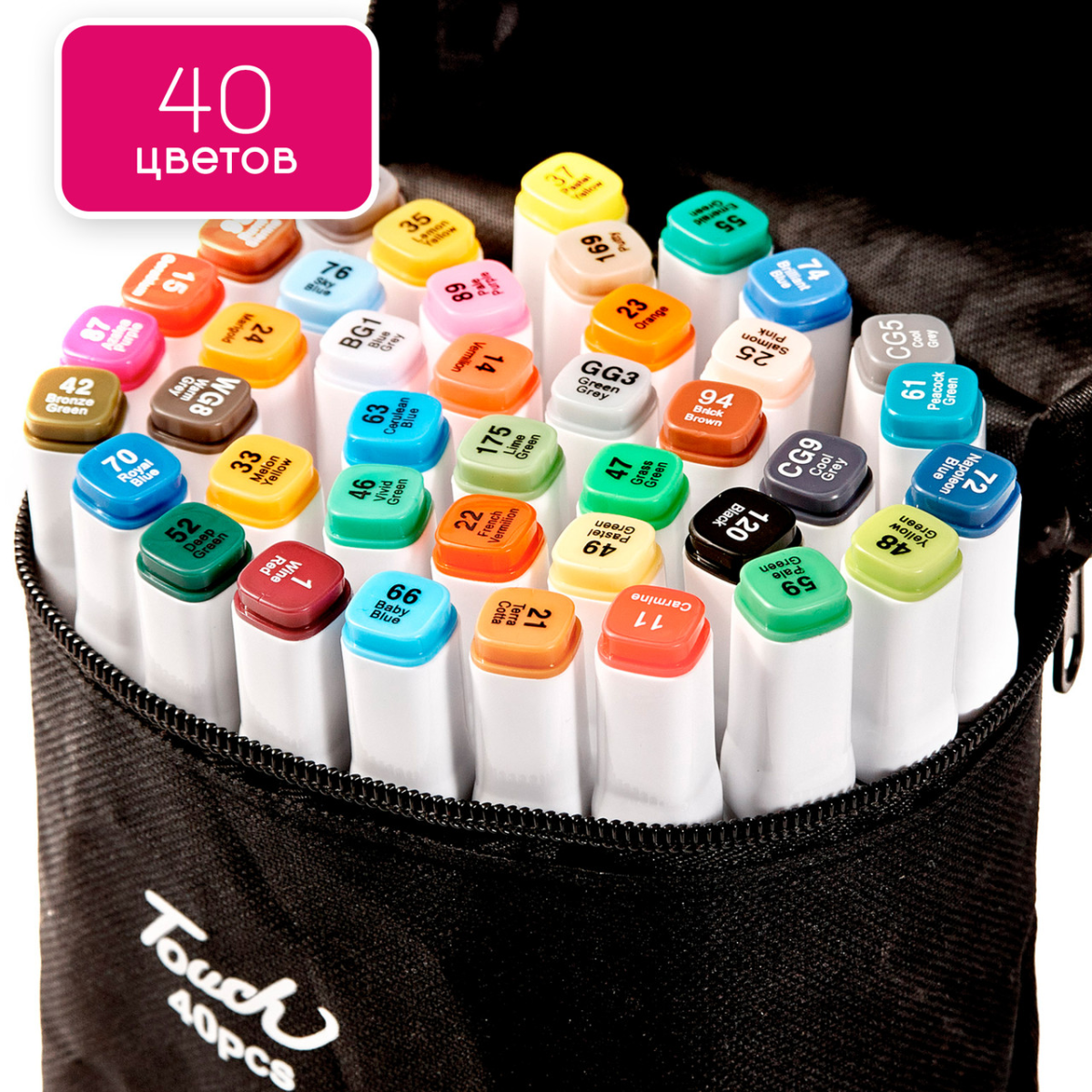 Маркери двосторонні для ескізів і скетчів на спиртовій основі Touch 40 кольорів, Фломастери для юних художників