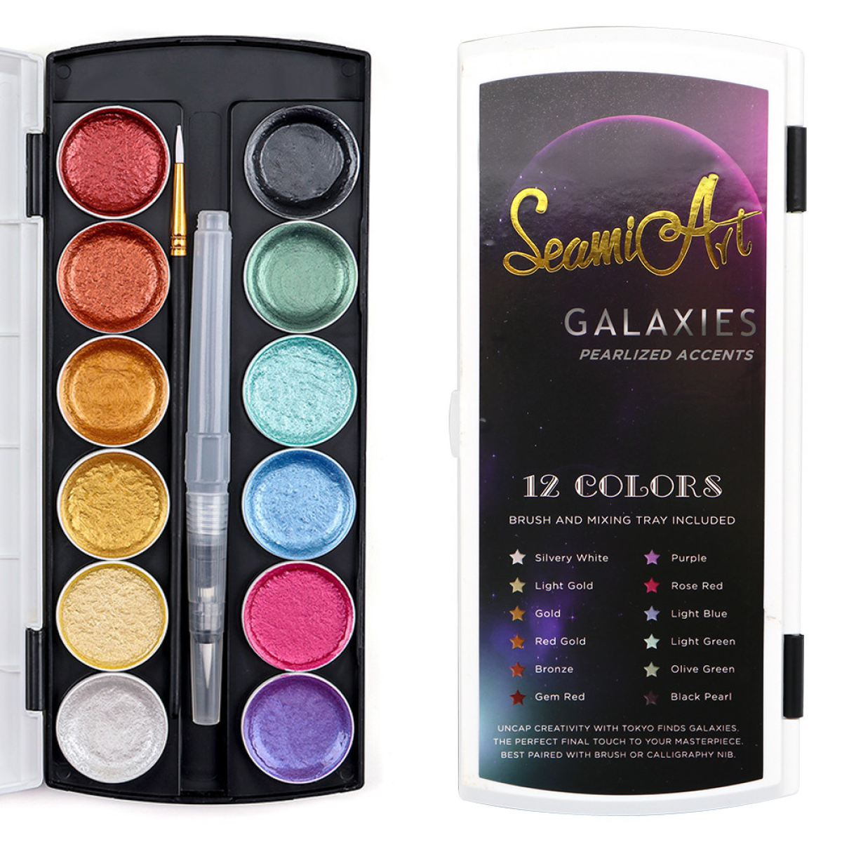 Фарби акварельні з перламутром (металік) для малювання 12 кольорів, перламутрові фарби, що переливаються