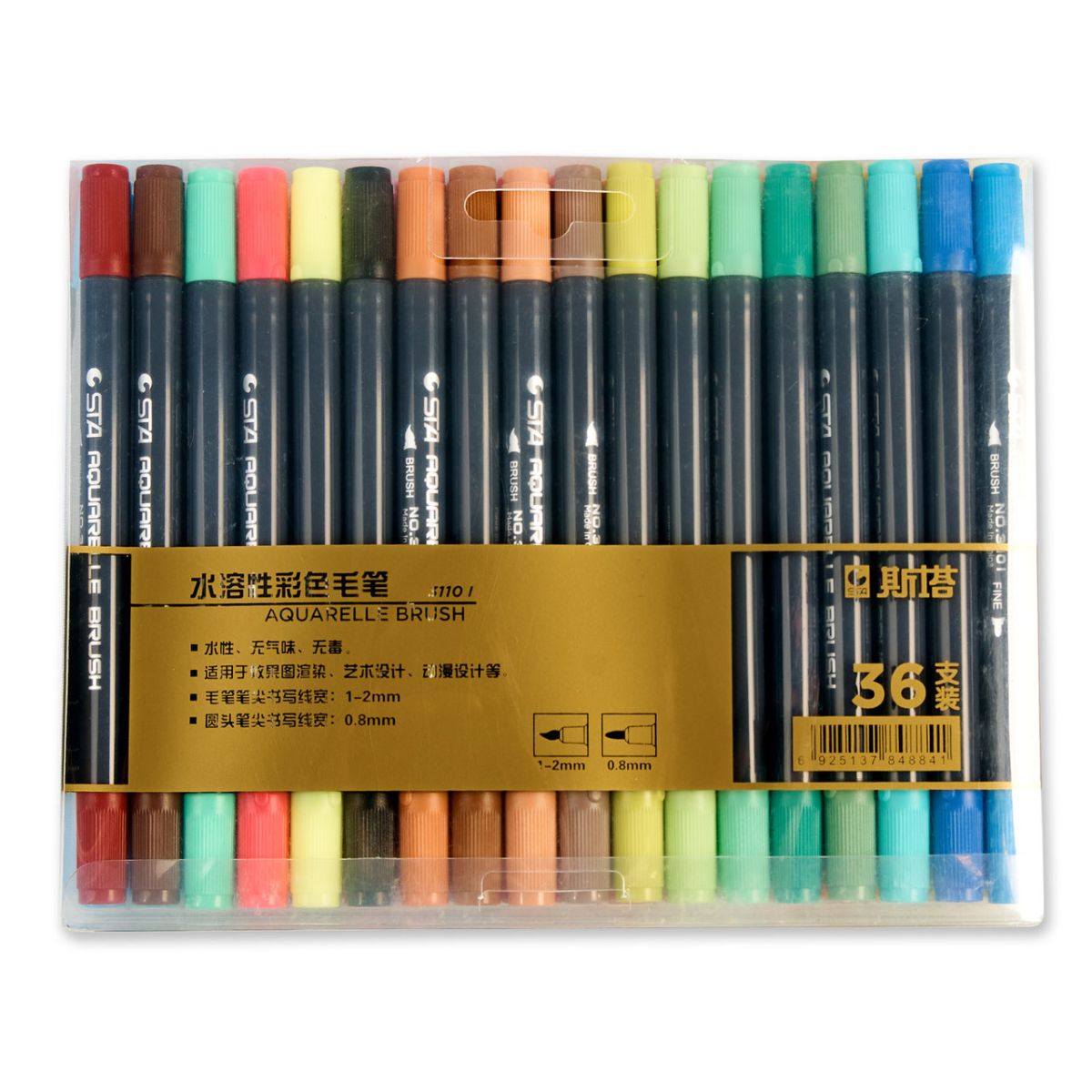 Відеоогляд! Набір двосторонніх акварельних маркерів STA 36 кольорів (B141220)