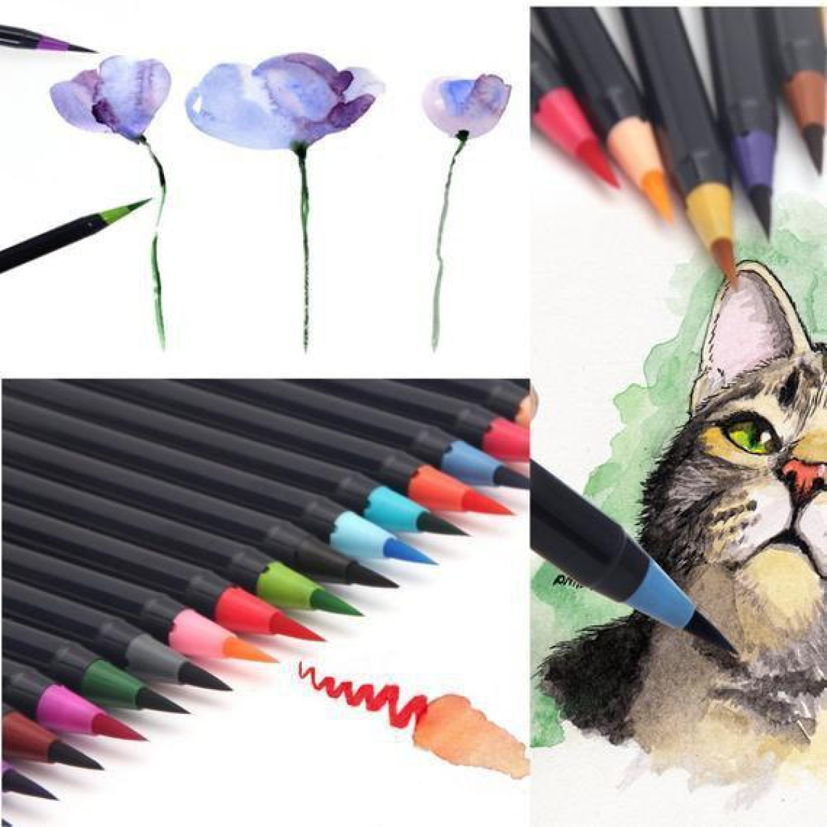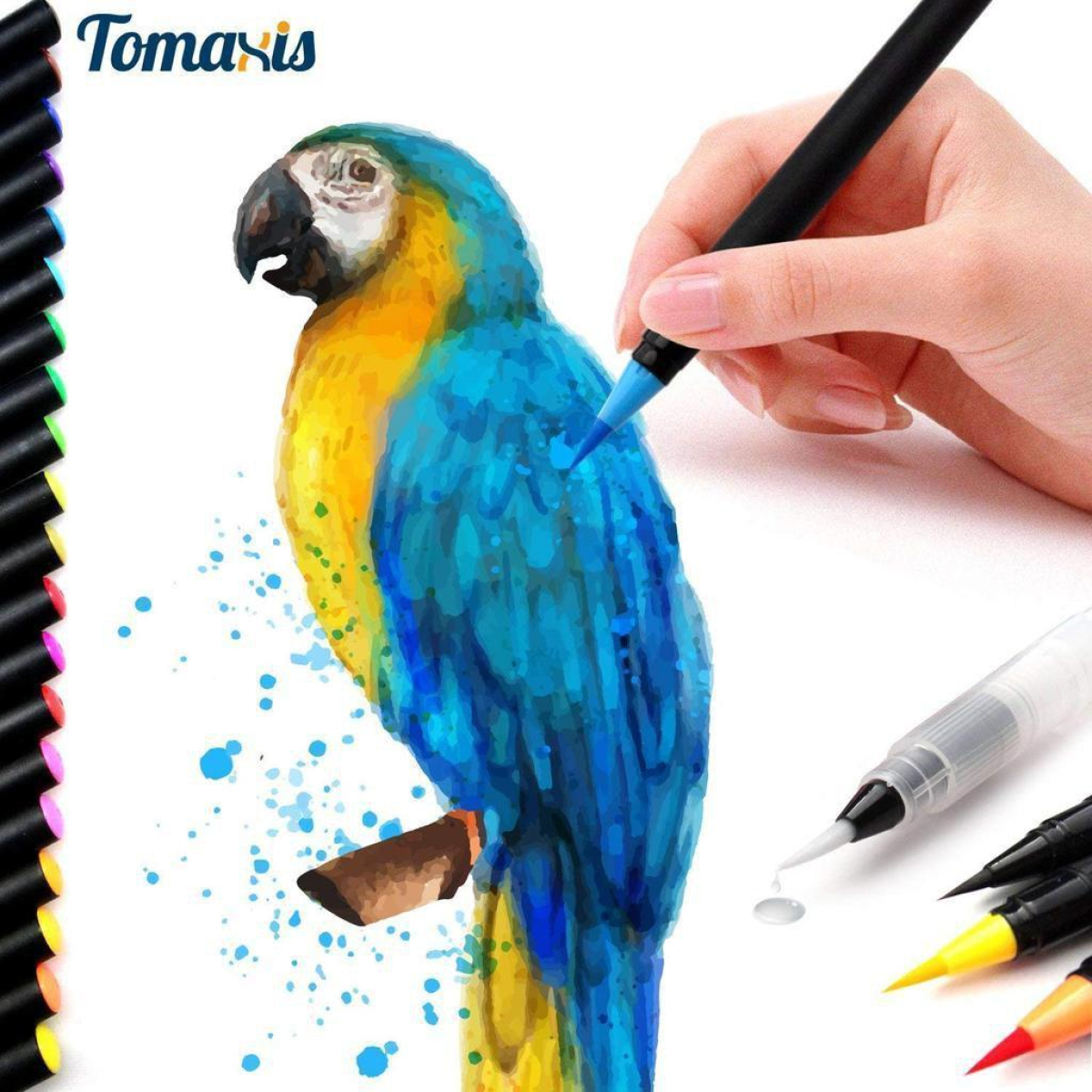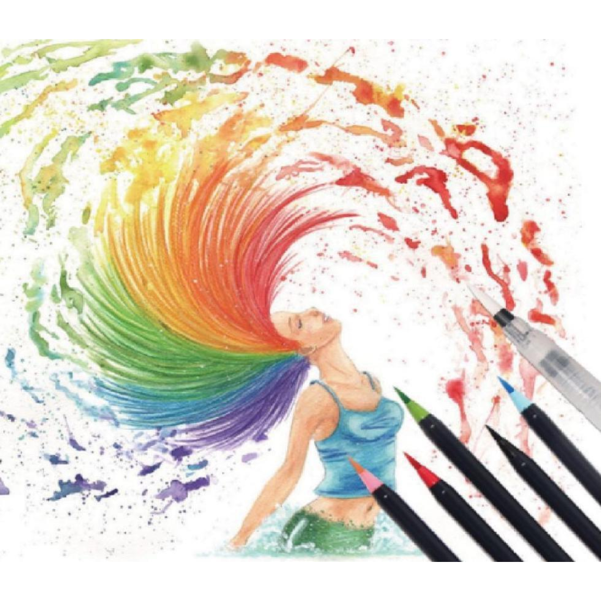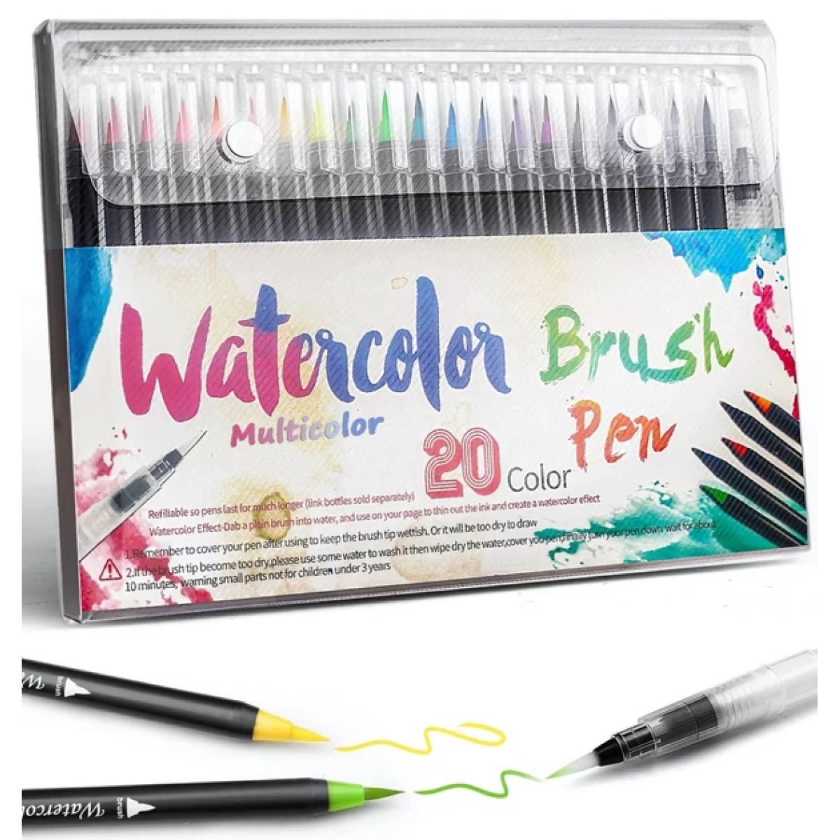 У набір для малювання входять маркери з акварельною фарбою (гамма з 20 відтінків) + пензлик з порожнім резервуаром для води. Чорнило в маркерах - це акварель високої якості, що дозволяє вільно працювати в акварельних або маркерних техніках. Фарба м“яко розмивається, без різких переходів. Чорнило на водній основі нагадують насичені акварельні фарби, тому кольори можна легко змішувати один з одним та ретушувати. Імітують акварель, чисті та зручні у використанні, можна легко застосовувати на відкритому повітрі та швидко створити робочу майстерню. Друга особливість цих чарівних маркерів – це пензель. Вона м“яко і плавно ковзає по папері, лінії немов самі вишиковуються так, як треба. Пензлик середній за розміром, і стійкий до вигинів і “розпушування“. Маркери відрізняються насиченістю та чистими кольорами в оптимальному діапазоні 20-ти найпопулярніших відтінків. Відмінно підходять для малювання в традиційній техніці, при промальовуванні деталей, розфарбовуванні, а також каліграфії - тонкі і товсті лінії малюються дуже легко. Також ці маркери це чудова ідея для подарунка для маленьких художників!