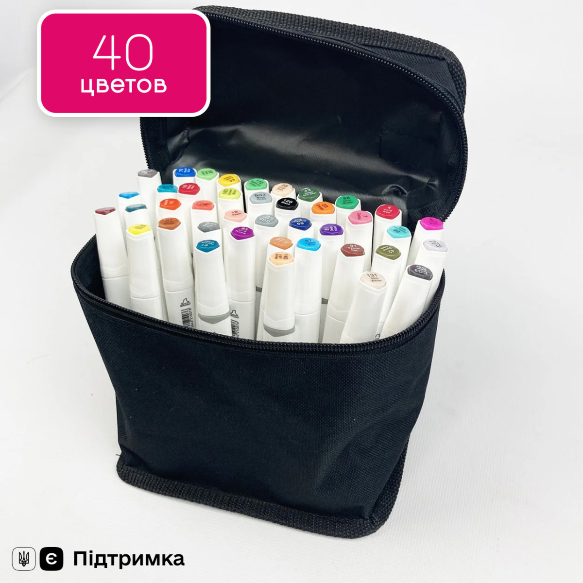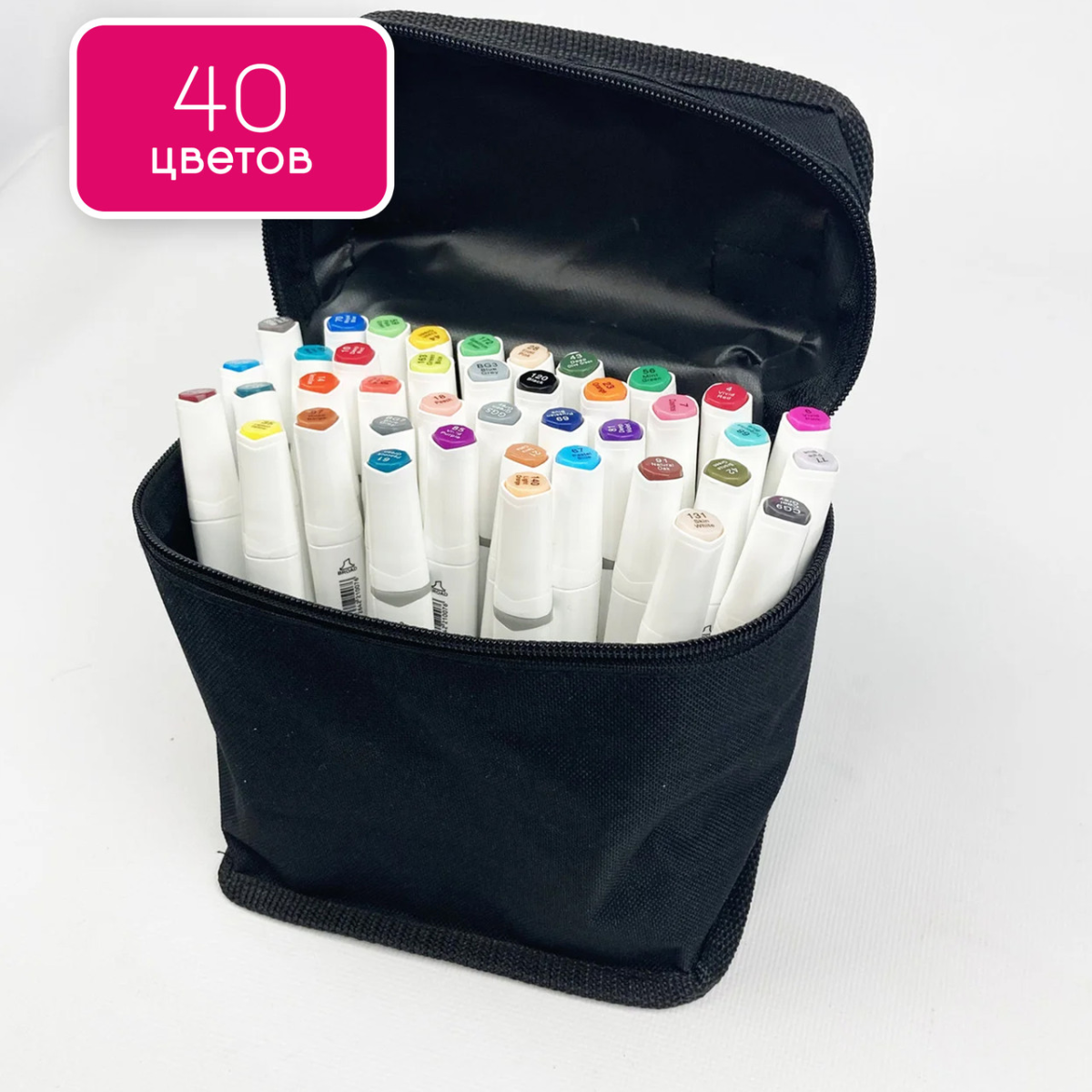 Набір професійних двосторонніх маркерів для скетчинга в чохлі Rich New 40 штук, Набір для скетчів