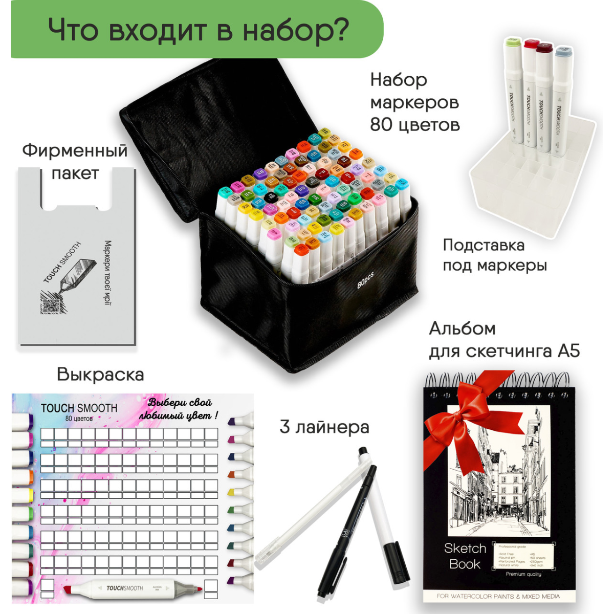 Професійний набір для малювання спиртові Скетч маркери Touch Smooth 80 шт + Скетчбук на 50 аркушів А4