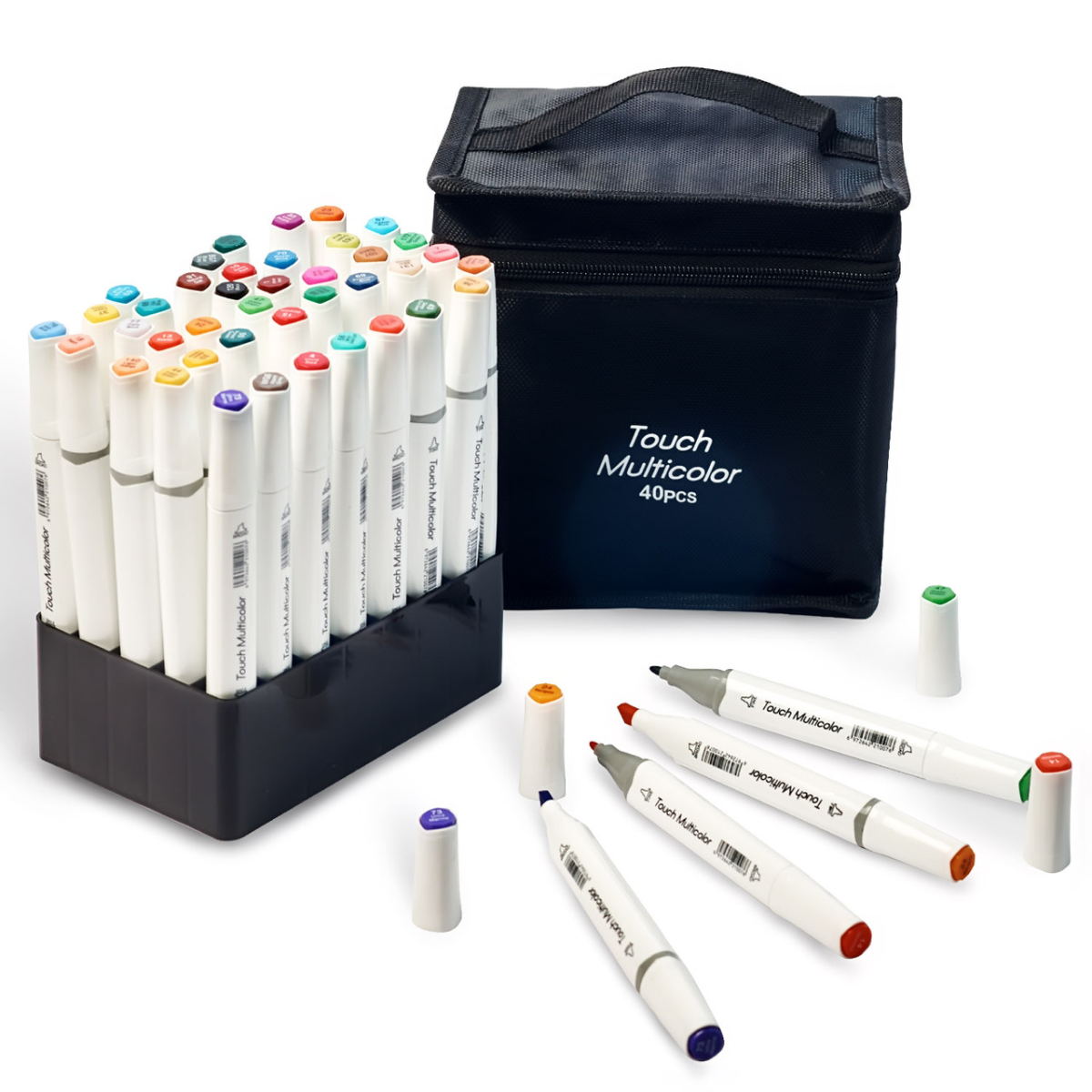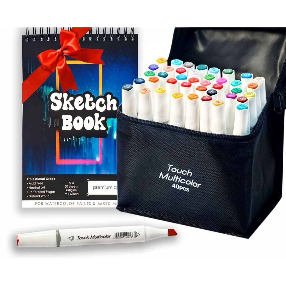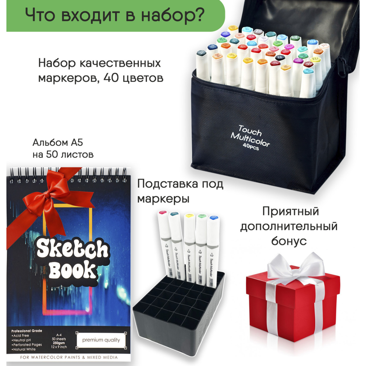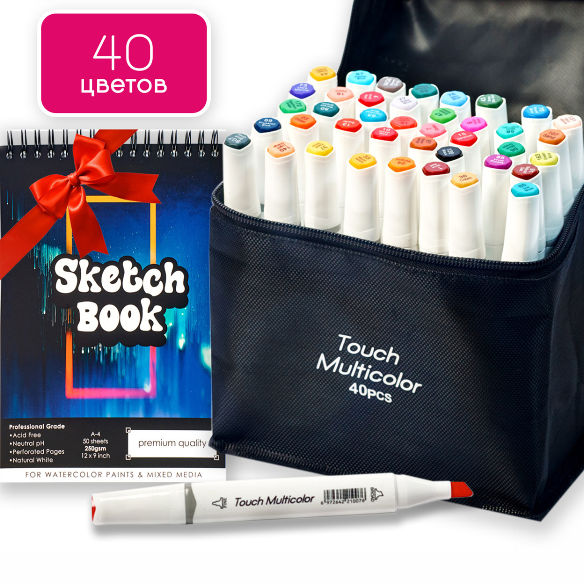 Професійний набір для малювання, маркери двосторонні спиртові Touch Multicolor 40 кольорів + Альбом А5