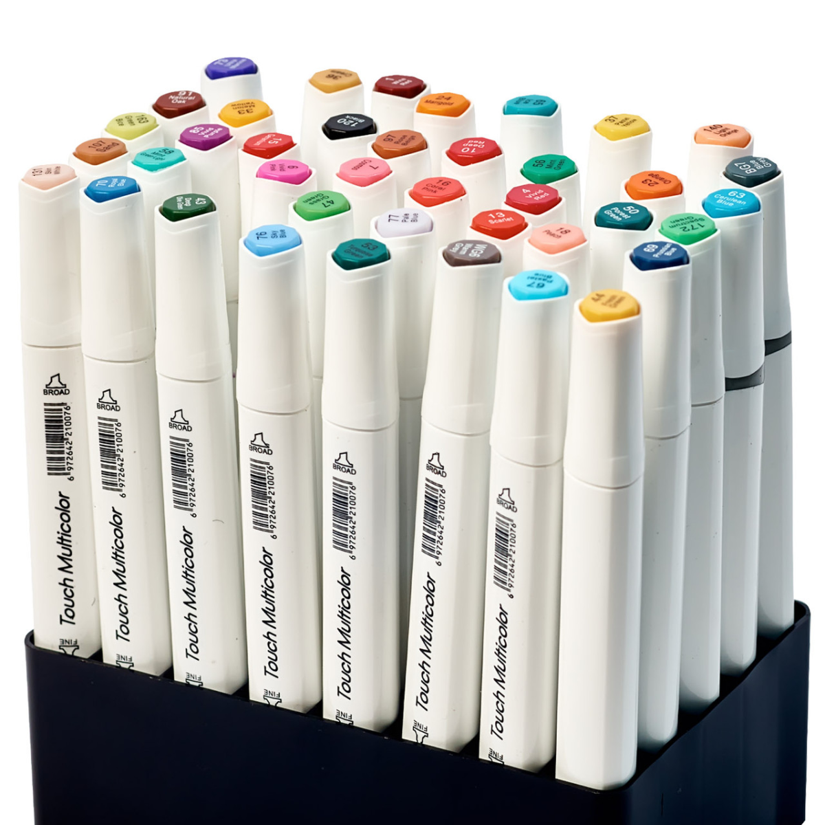 СПЕЦІАЛЬНА ПРОПОЗИЦІЯ ! Ви купуєте Набір маркерів двосторонніх Touch Multicolor 40 кольорів та в подарунок отримуєте Папір для скетчингу та малювання у форматі А5. Такий набір найпопулярніший серед художників та фанатів малювання. Спиртові маркери Touch Multicolor для тих, хто захоплений малюванням та каліграфією, любить створювати комікси та мальовничі ескізи. У наборі представлена ​​різноманітна палітра кольорів, яка допоможе відтворювати яскраві та привабливі малюнки. Маркери дуже якісні, і це забезпечує їм довгу службу. Корпус пластиковий гладкий. Ковпачки щільно закриваються. Кожен маркер має два наконечники різної форми для різних типів робіт. Загострений наконечник для тонких ліній та контурів. Плоский наконечник із скошеним краєм для широких штрихів. Кожен колір має свій цифровий код, нанесений на ковпачок маркера. Чорнило на спиртовій основі добре вбирається в папір, тому рекомендується використовувати щільні листи або картон. Саме тому в ПОДАРУНОК додається спеціальний альбом із щільним та якісним акварельним папером. Альбом із 50 листів щільністю 250 г/м2. Альбом на спіральці призначений для малювання, особливо підходить для спиртових маркерів. Цей папір забезпечує комфортне малювання, оскільки маркери не розтікаються та не передруковуються. Це найкращий варіант для подарунка як художнику-початківцю або любителю, так і для профі!
