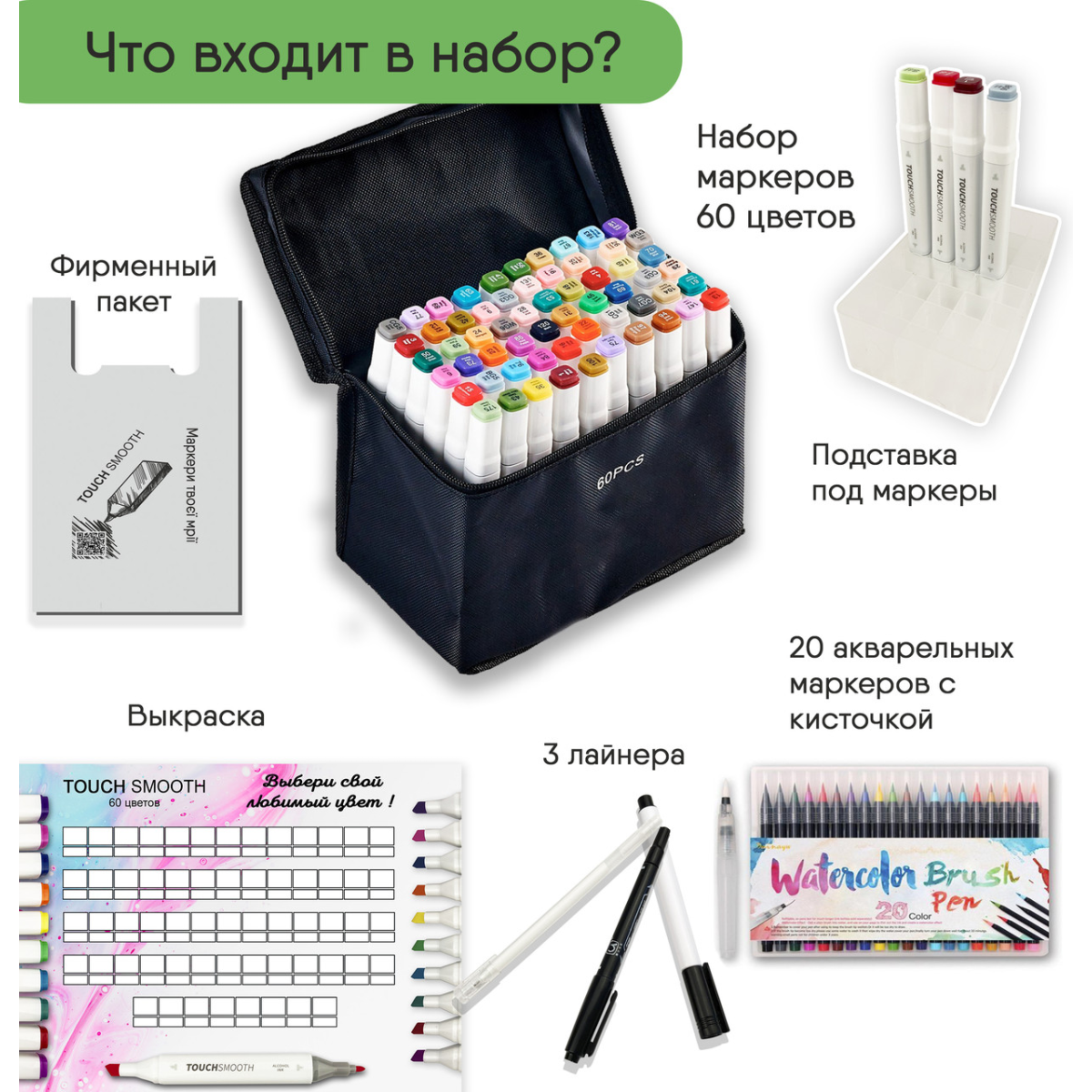 Набір двосторонніх маркерів Touch Smooth для скетчинга на спиртовій основі 60 штук