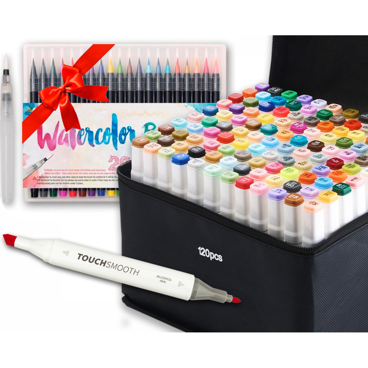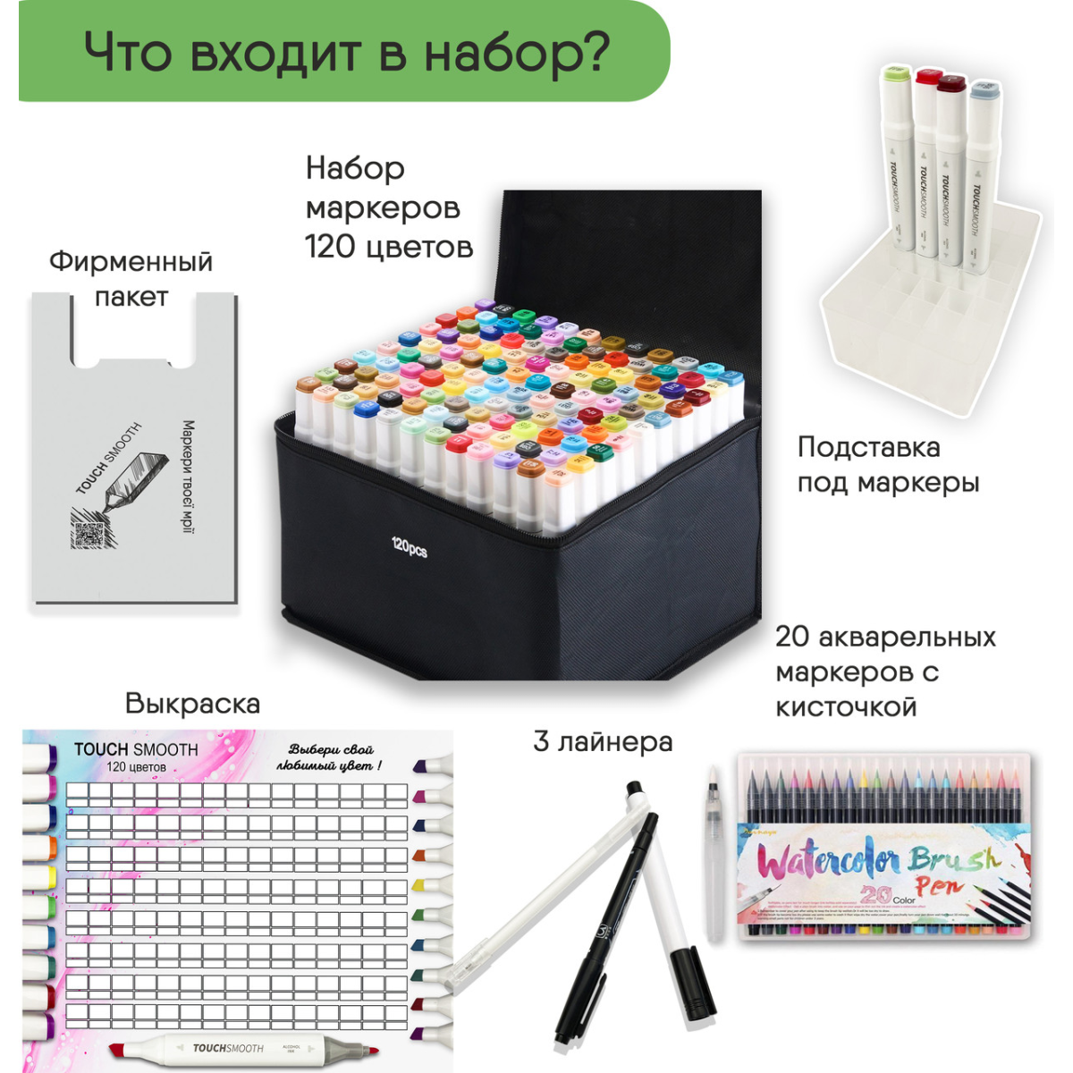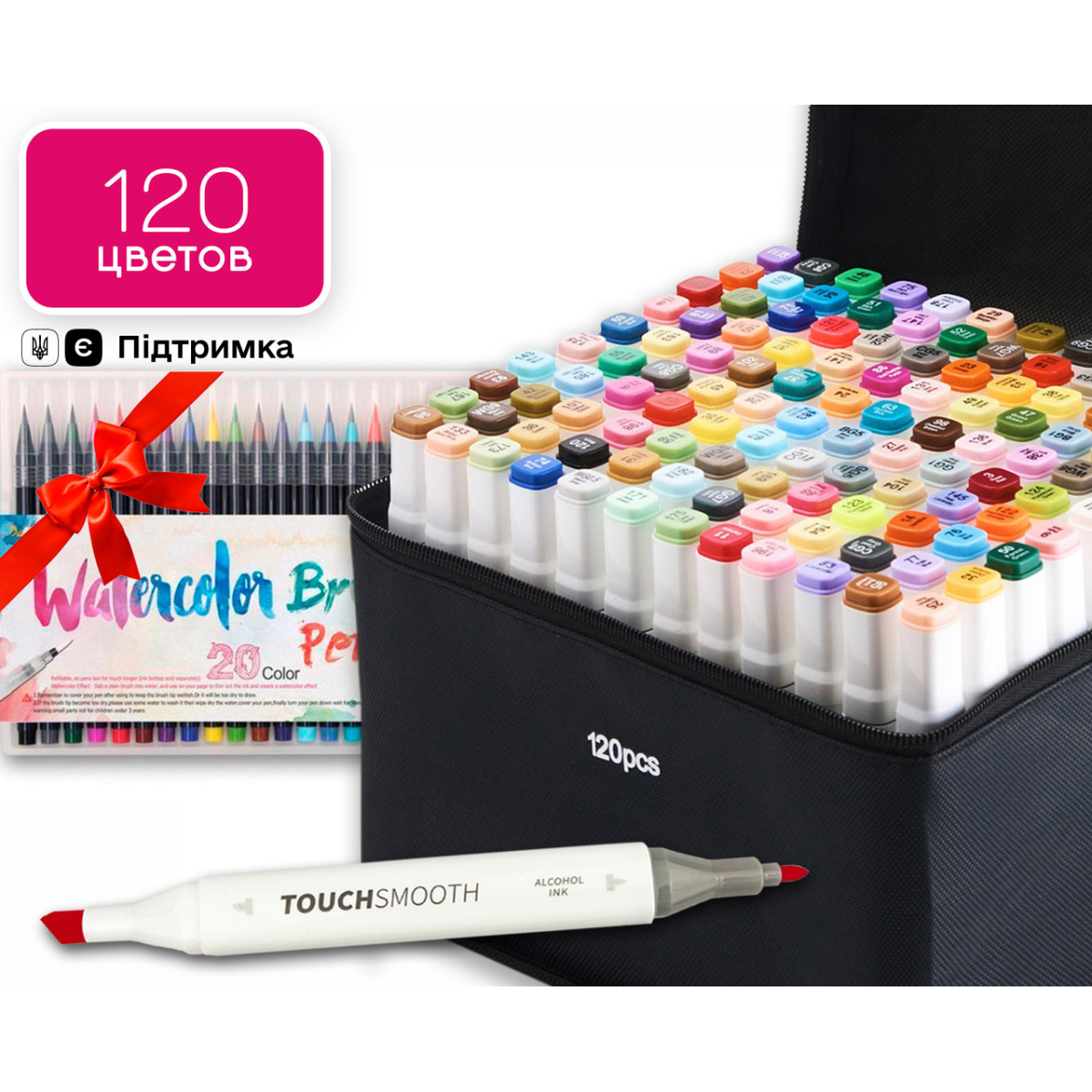 Набір маркерів Touch Smooth на спиртовій основі 120 штук + Набір акварельних маркерів Water Color Brush 20 шт