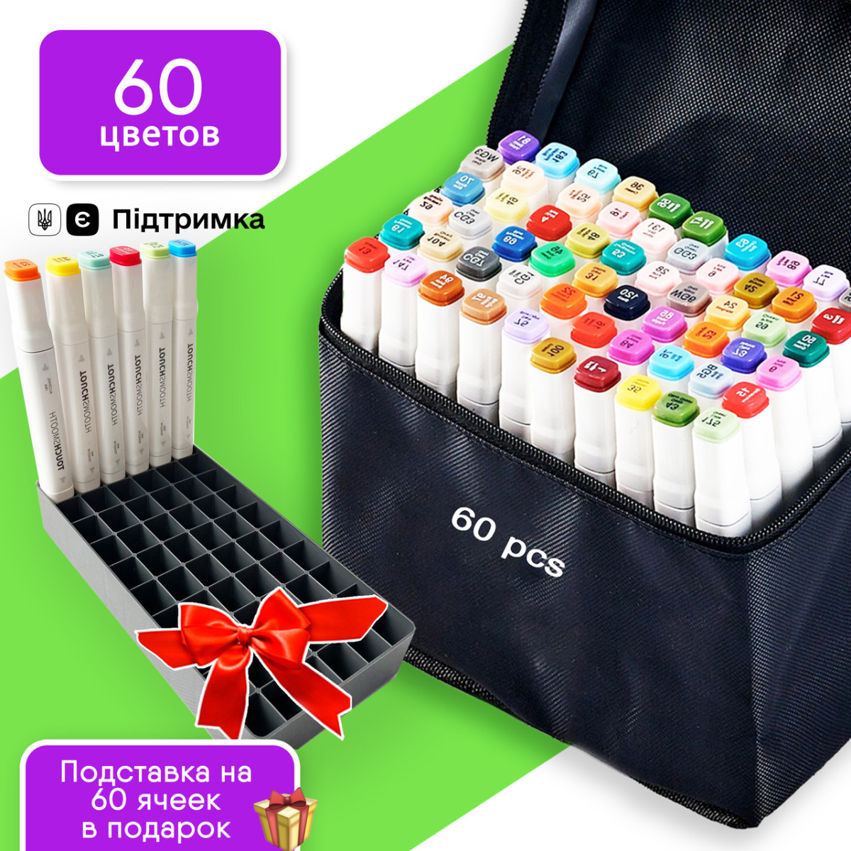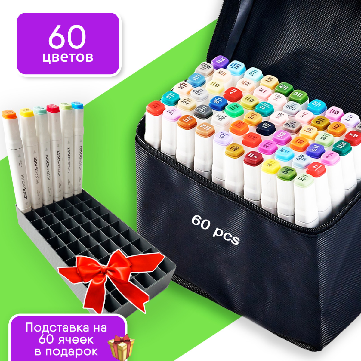 Набір якісних скетч маркерів для малювання та скетчингу Touch Smooth 60 шт, Фломастери для художників