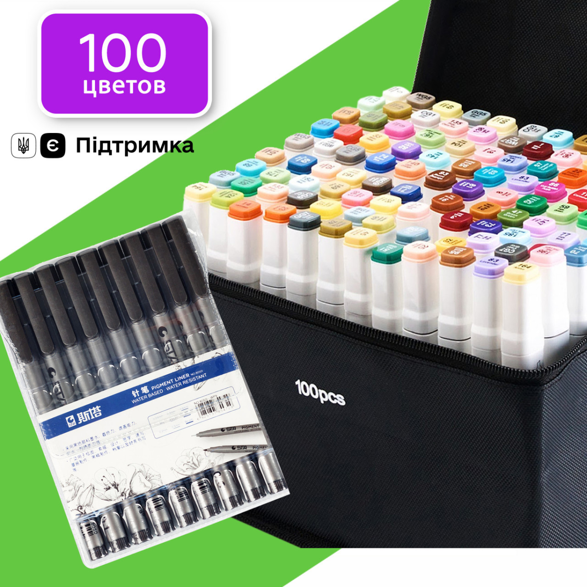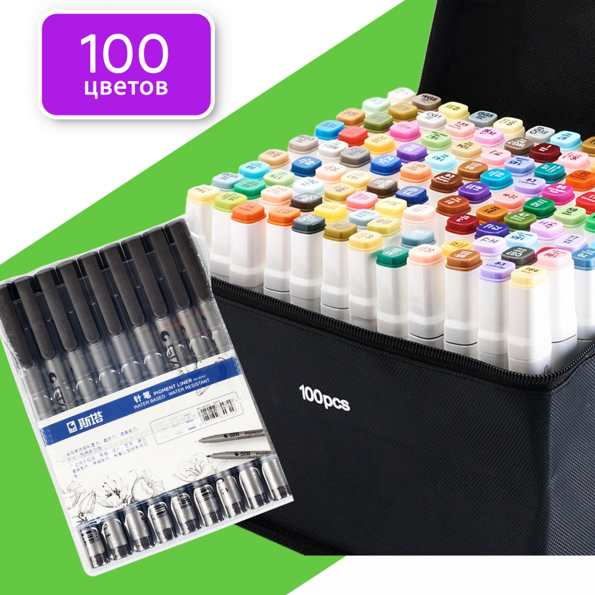 Маркери двосторонні Touch 100 кольорів і набір лайнерів 9 шт для ескізів і скетчів, набір фломастерів