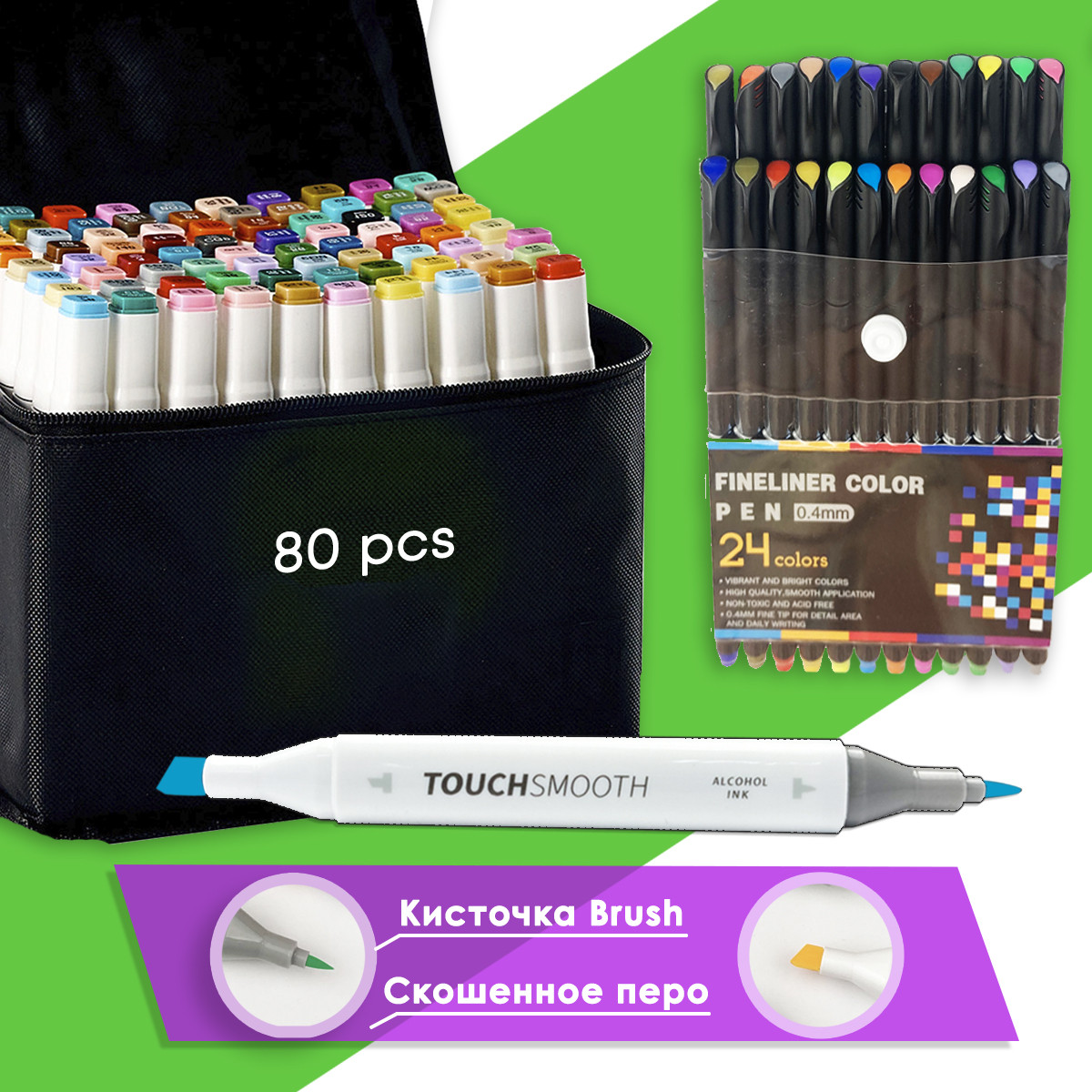 Маркери двосторонні Touch 80 кольорів і набір лайнерів 24 кольори для ескізів і скетчів, набір фломастерів для художників і дизайнерів