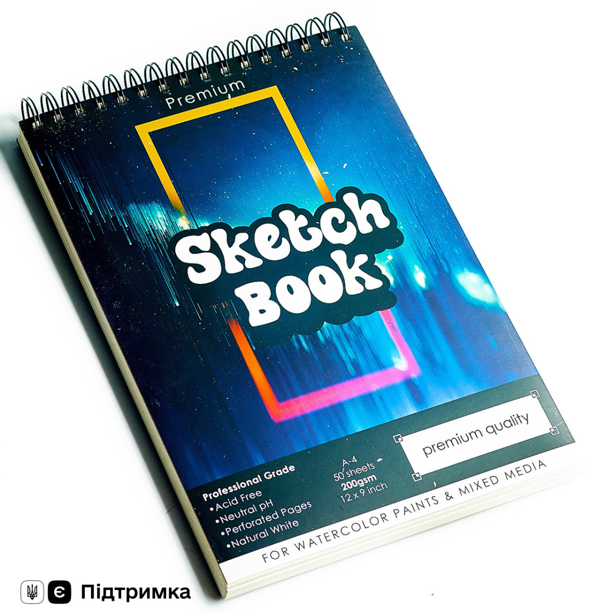 Скетчбук з акварельного паперу А4 200 г\м2 для скетчинга для малювання, альбом 50 аркушів
