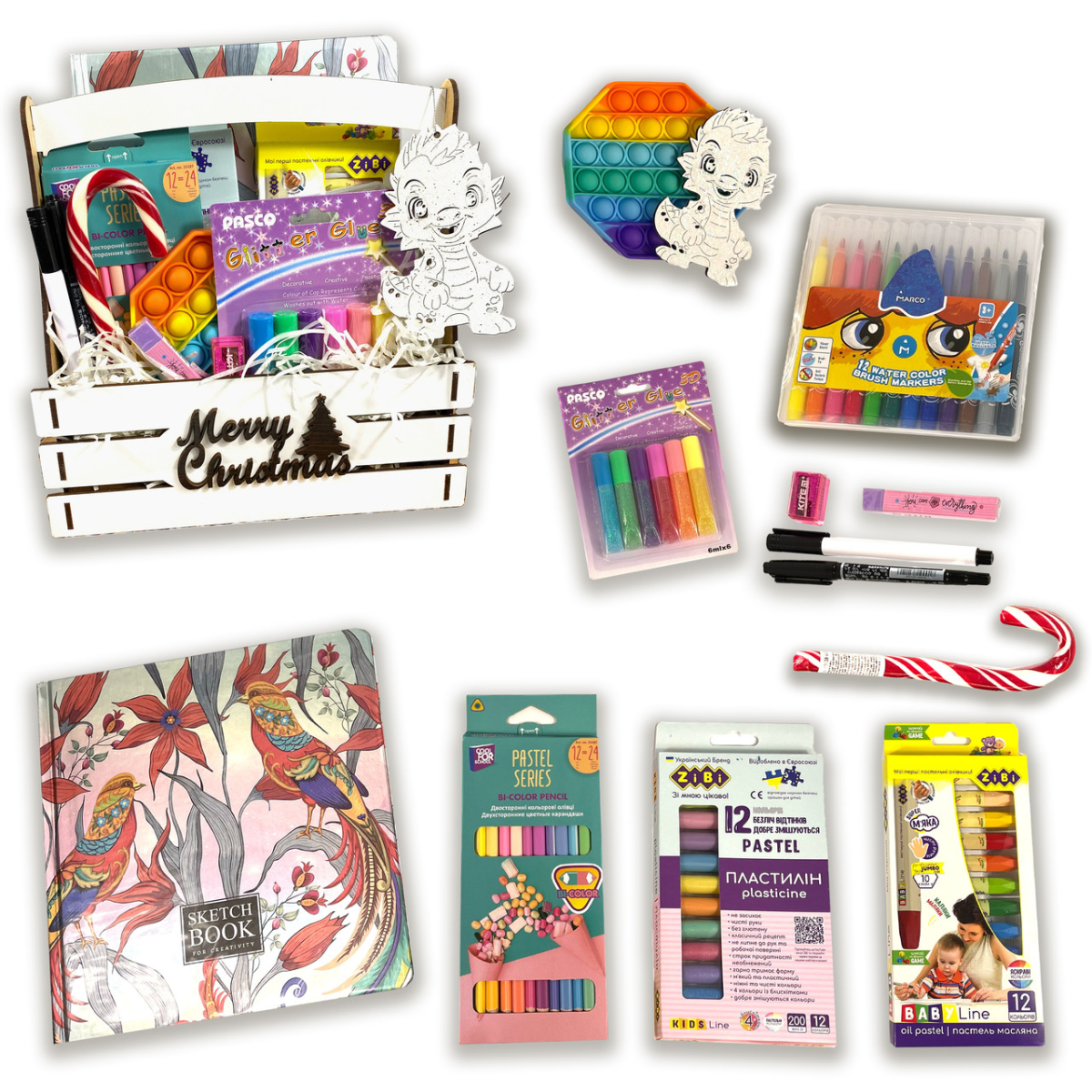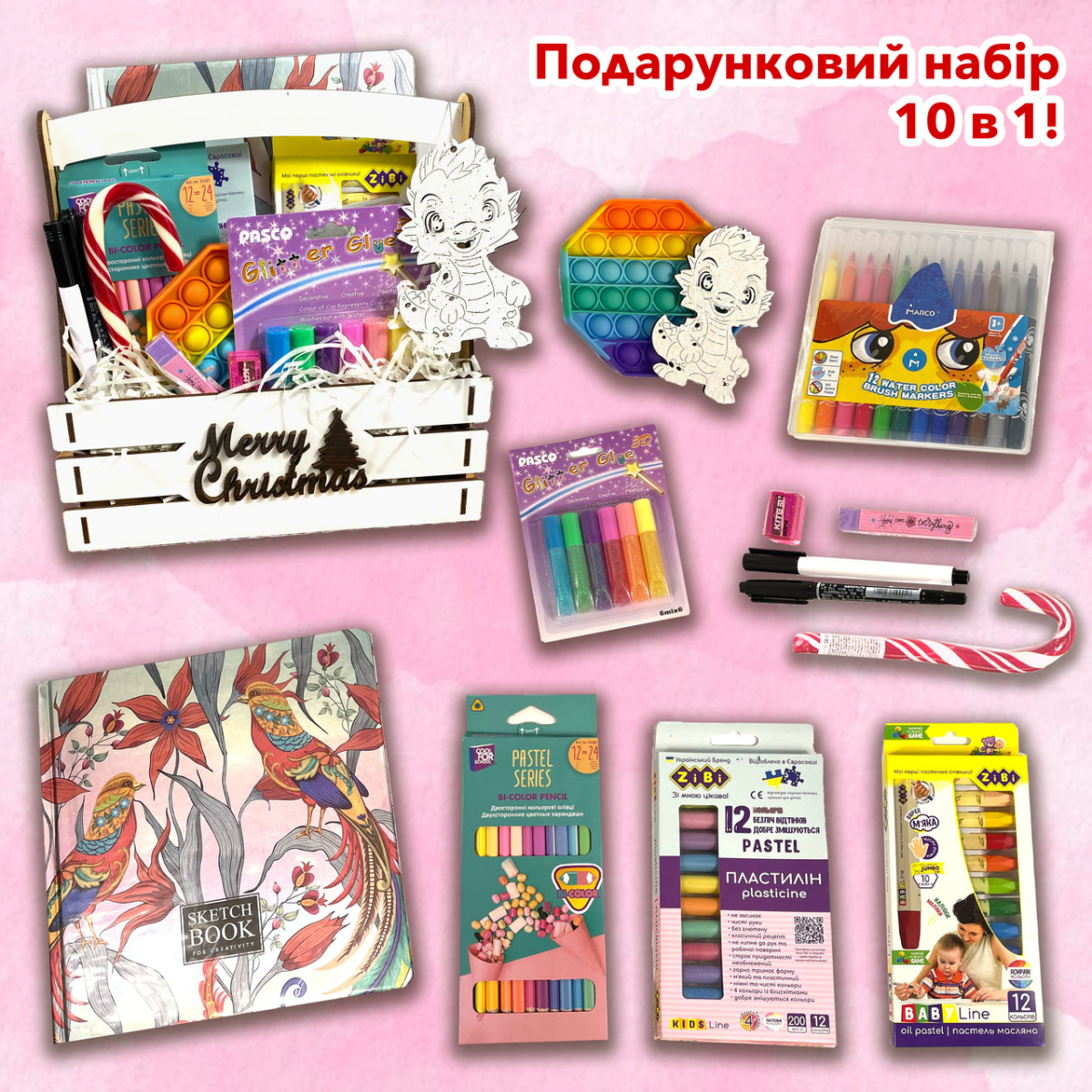 Подарунковий набір для дітей на новий рік, набір для творчості 10 в 1 (маркери, олівці, блокнот та інше)