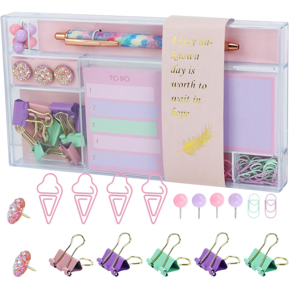Подарунковий набір канцелярії для навчання, органайзер для офісу, ручка, скріпки, біндери та стікери