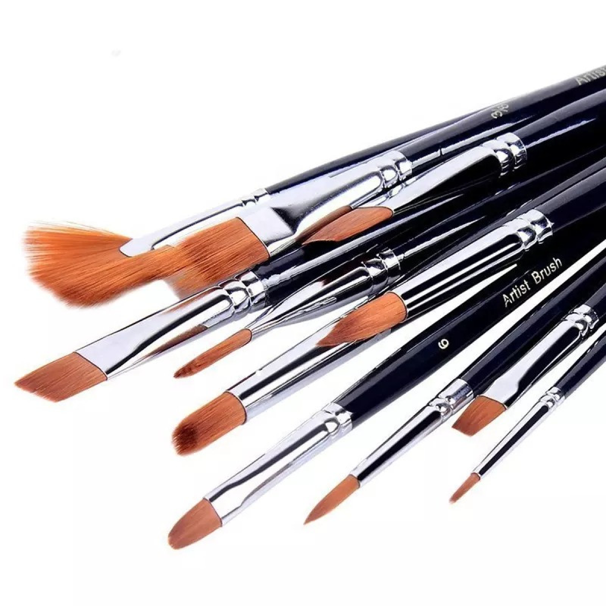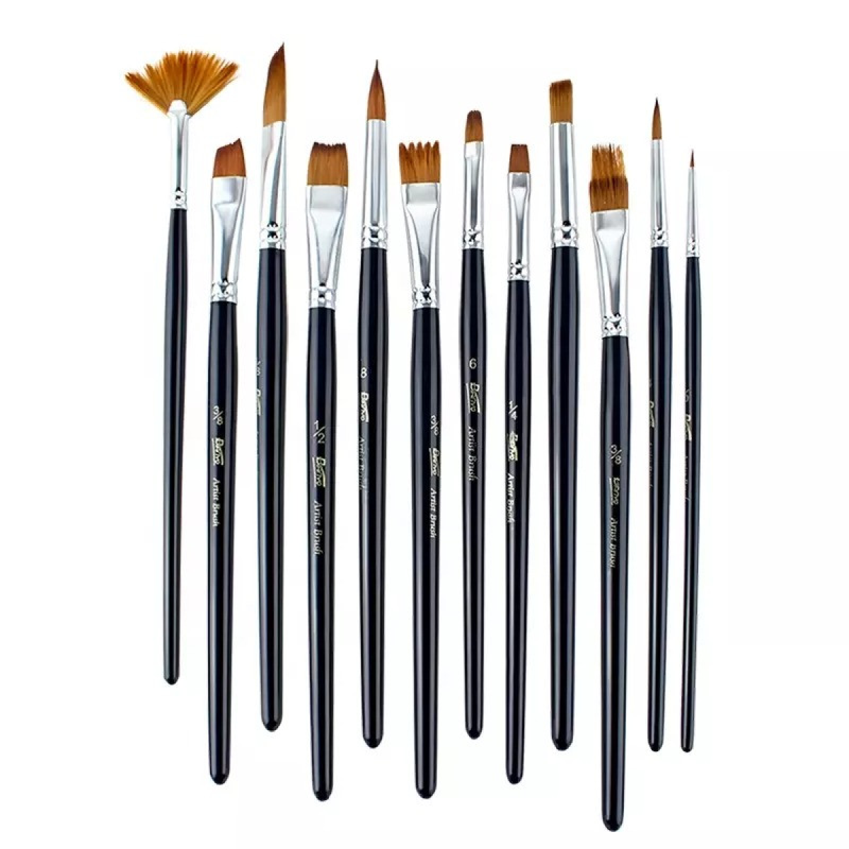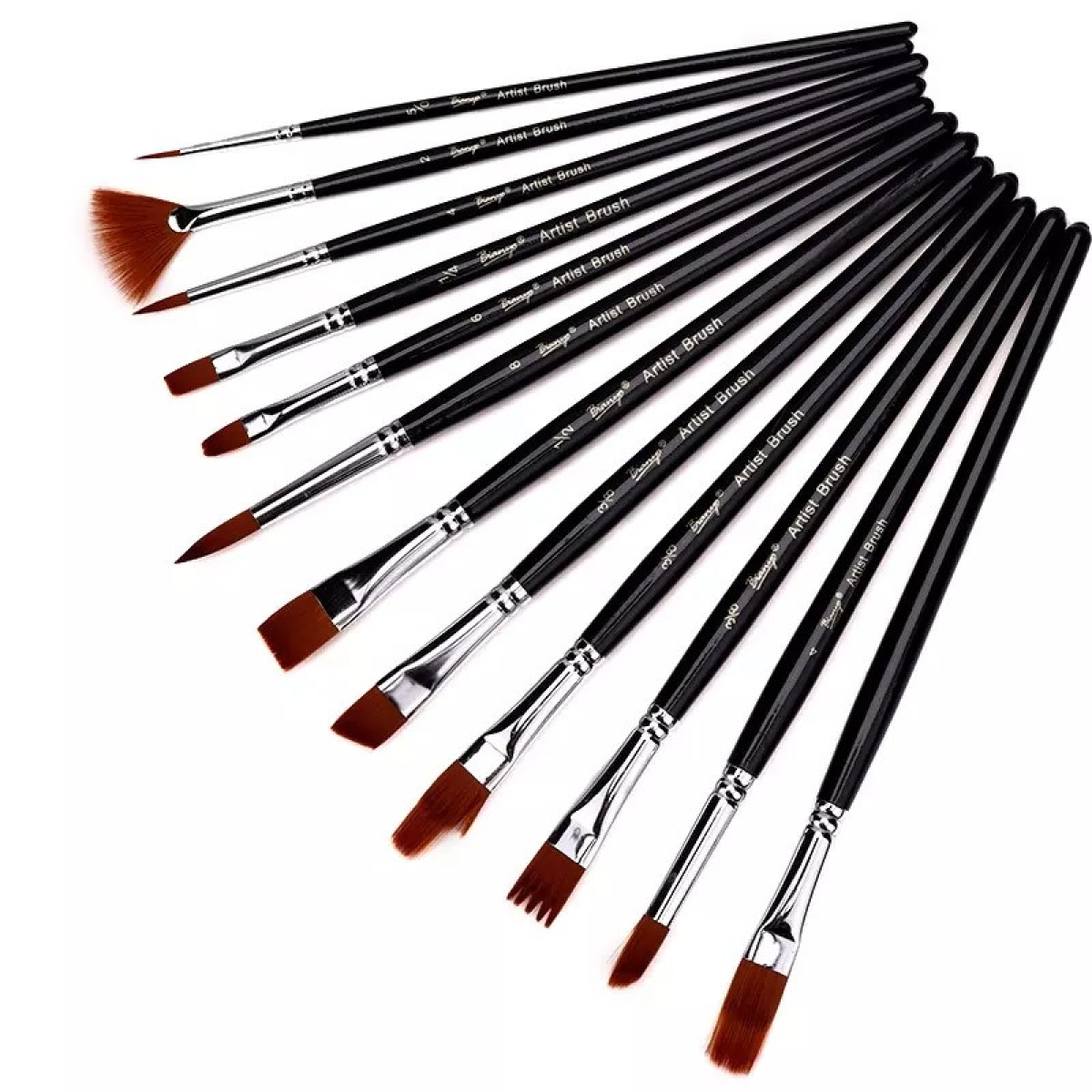 Набір нейлонових пензлів для малювання 12 шт з дерев“яною ручкою, кисті із синтетичного ворсу