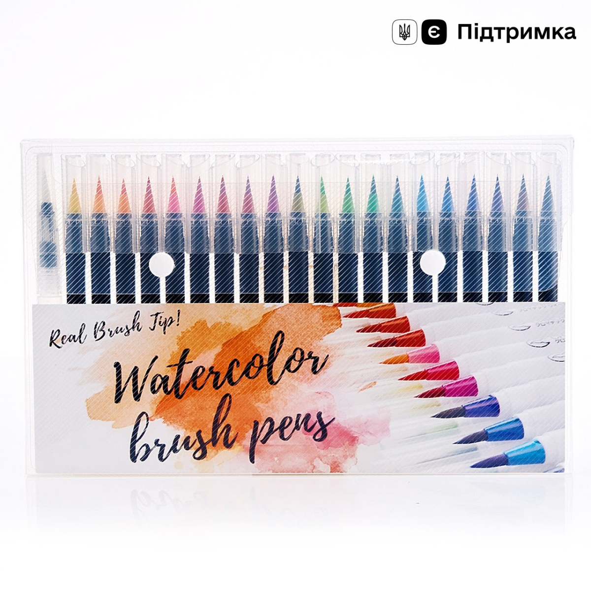 У Дитячий набір для малювання Bianyo входять маркери з акварельною фарбою (палітра з 20 відтінків) + пензлик з порожнім резервуаром для води.