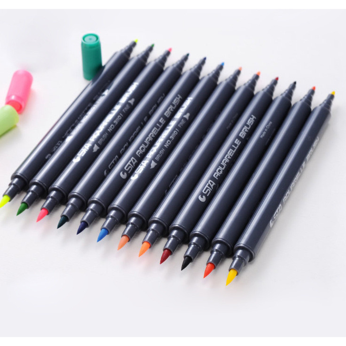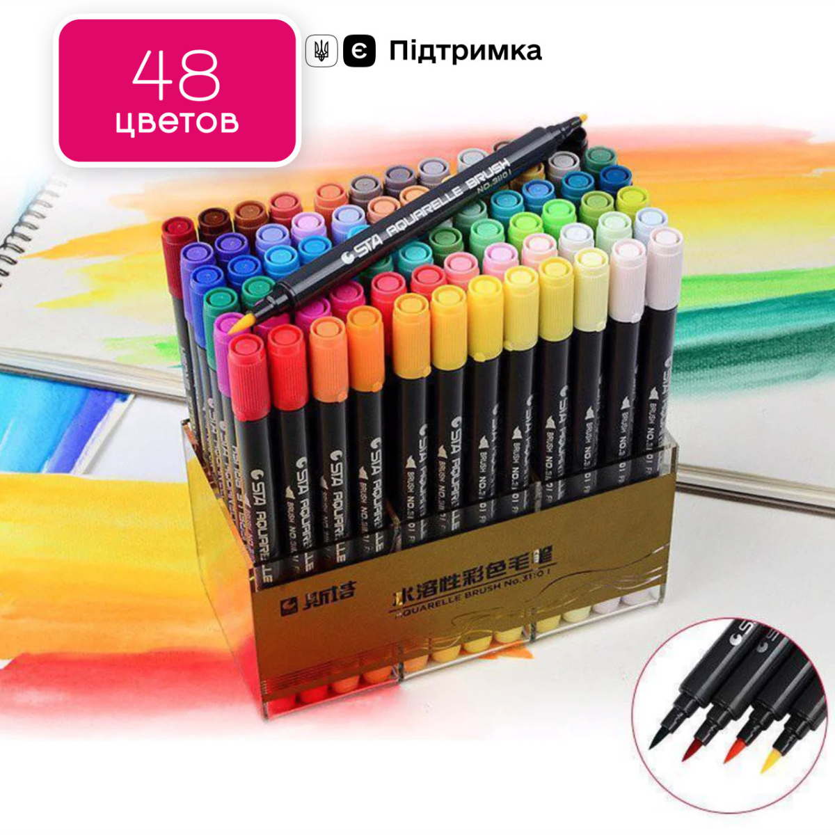 Набір двосторонніх акварельних маркери на водній основі STA 48 кольорів, аквамаркери, Відеоогляд!