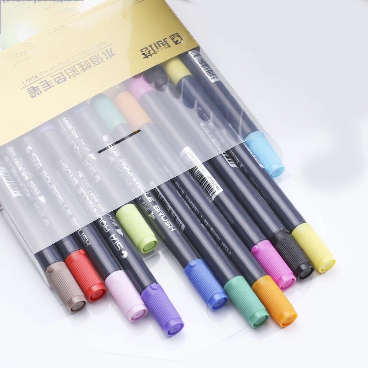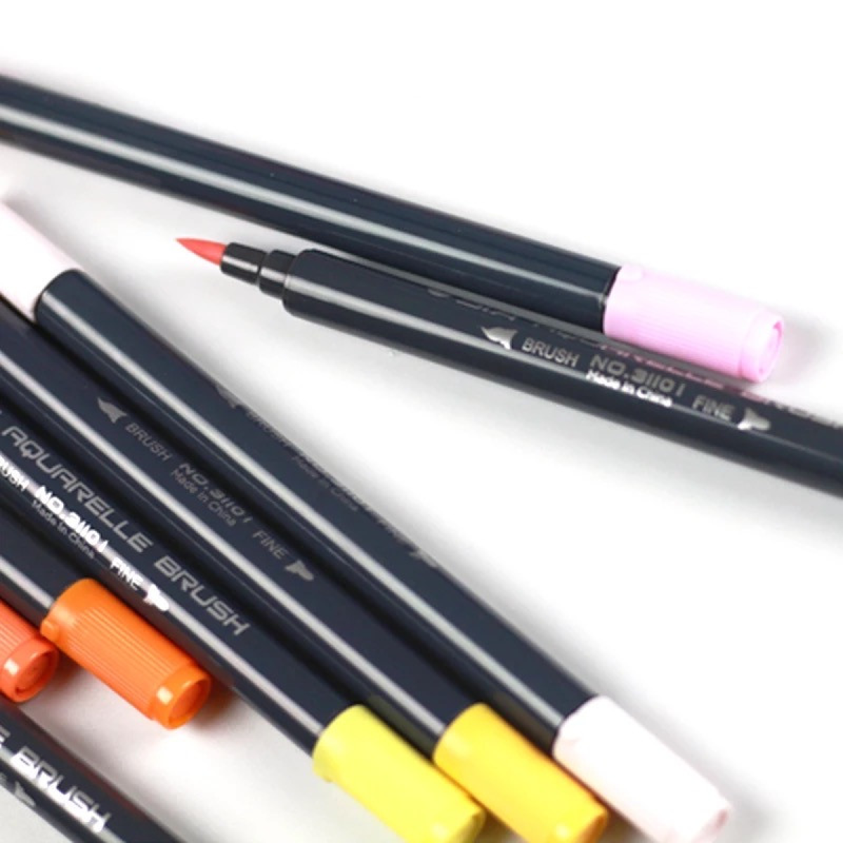 Акварельні маркери - це новий інноваційний продукт, що поєднав компактність маркера і ефектність акварельної фарби. Акварельні маркери наповнені пігментованим чорнилом на водній основі (пігмент розчинений у воді). Пігментоване чорнило, що використовується в аквамаркерах, має безліч переваг. Вони мають яскравий, насичений світлостійкий колір (колір не блякне при світловому впливі протягом тривалого часу). Пігментовані чорнила не містять кислот і виробляються на основі натуральних компонентів. Маркери мають два наконечники: гнучкий нейлоновий пензлик - для м“якого зафарбовування та тонке перо для промальовування деталей. Ідеально підходять для любителів та професійних художників! Не точні. Безпечні під час використання за призначенням.