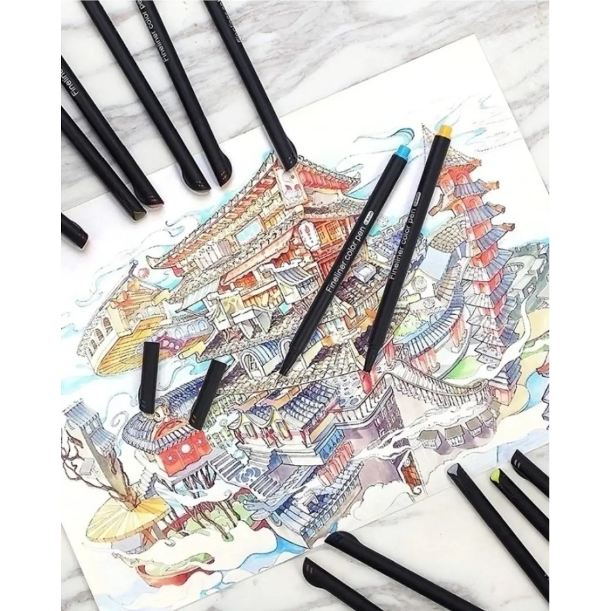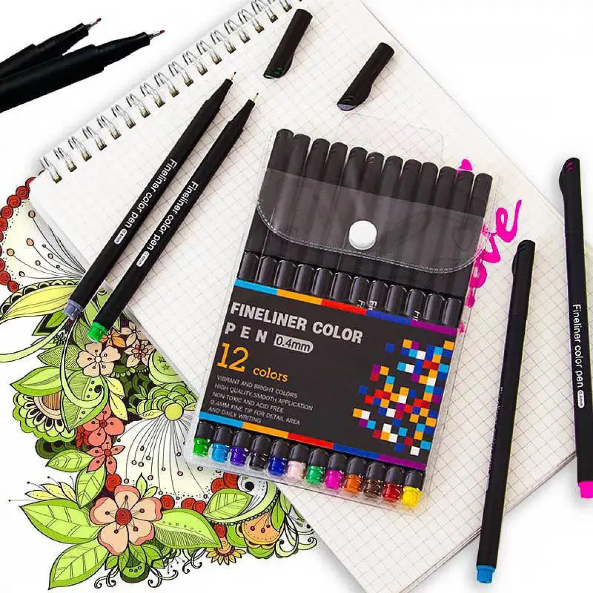Набір різнокольорових лінерів Fineliner Color 12 кольорів, професійний набір лінерів для скетчів та малювання!
