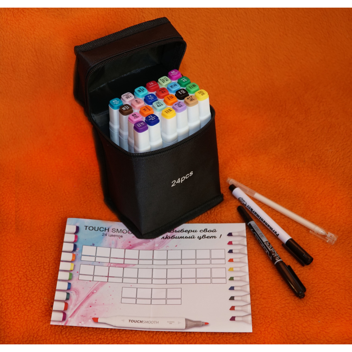 Touch Smooth - це набір з 24 двосторонніх маркерів на спиртовій основі з яскравою і соковитою палітрою для ілюстрацій і скетчів, коміксів і мальовничих ескізів.
