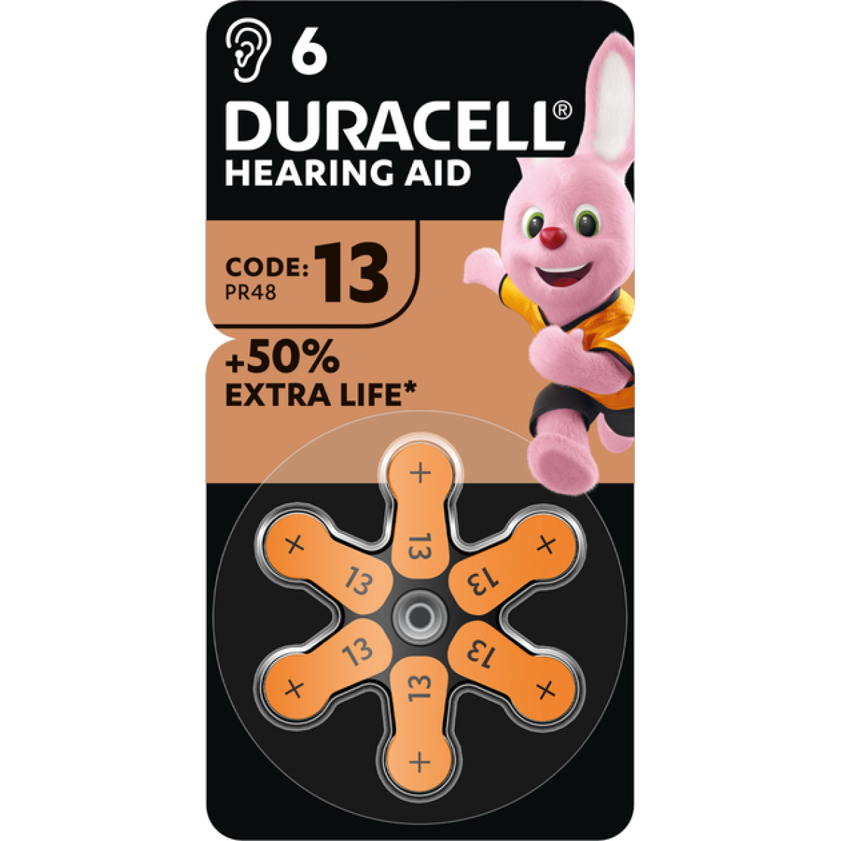 Почуйте все завдяки тривалому терміну служби спеціальних батарейок для слухових апаратів Duracell Hearing Aid розміру 13 з EasyTab.EasyTab має достатню довжину для зручного використання та заміни батареї, а полегшену упаковку легко відкрити.