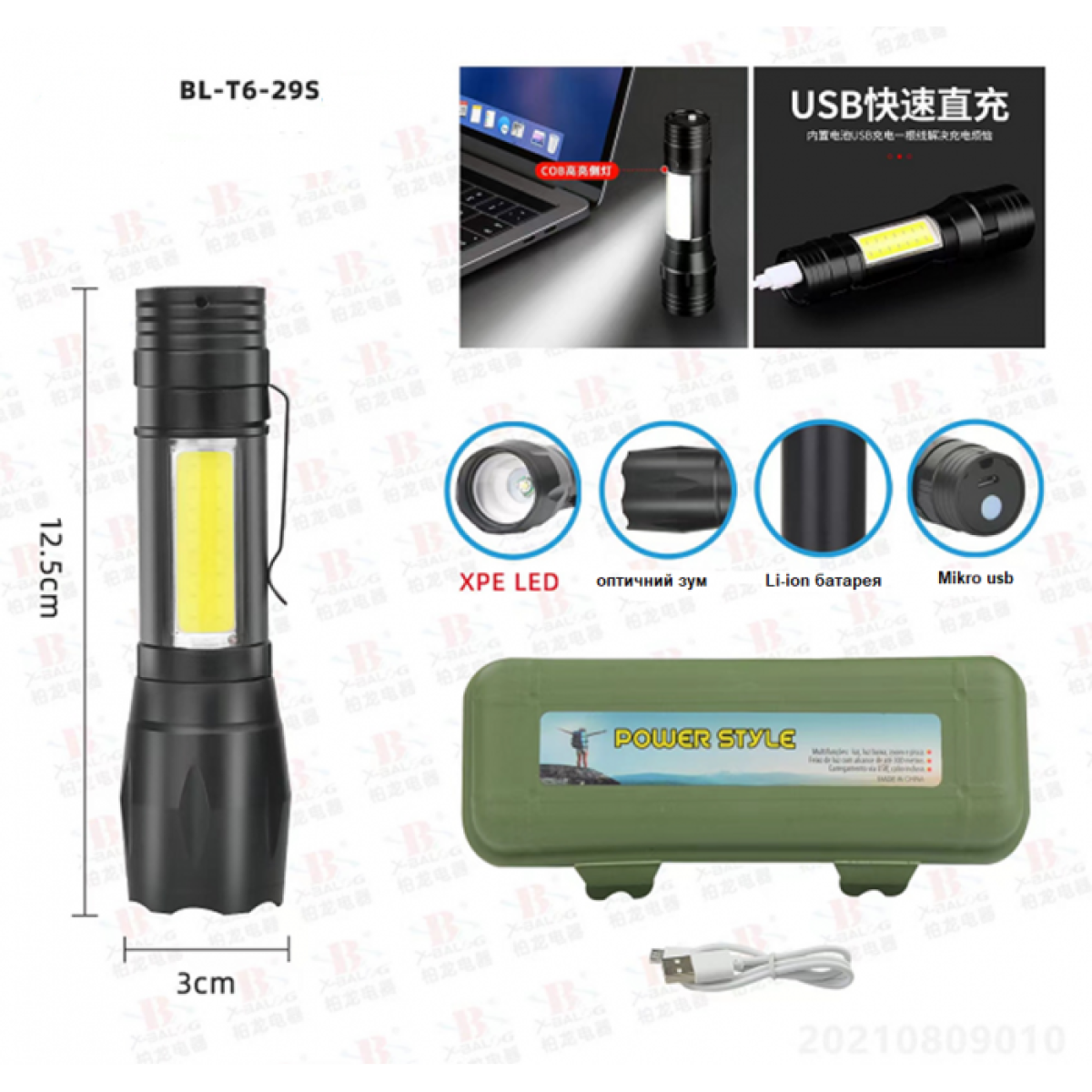 Ліхтар BL-T629S-XPE+COB, ст. акум