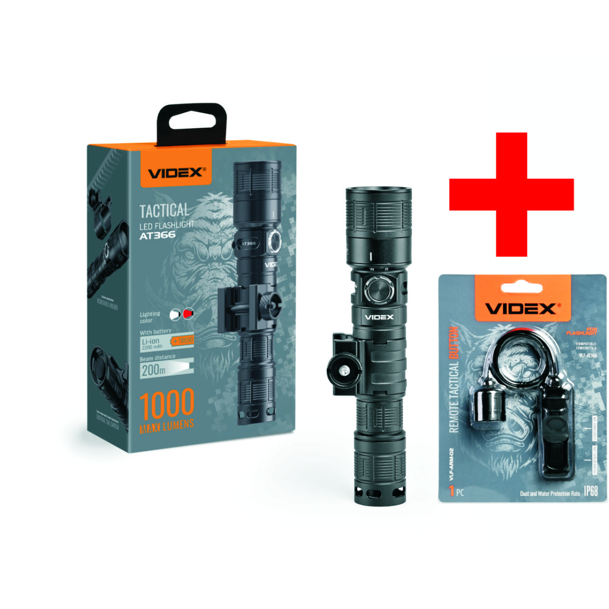 Тактичний ліхтарик Videx VLF-AT366 1000Lm 5000K + виносна тактична кнопка Videx ARM-02, КОМПЛЕКТ